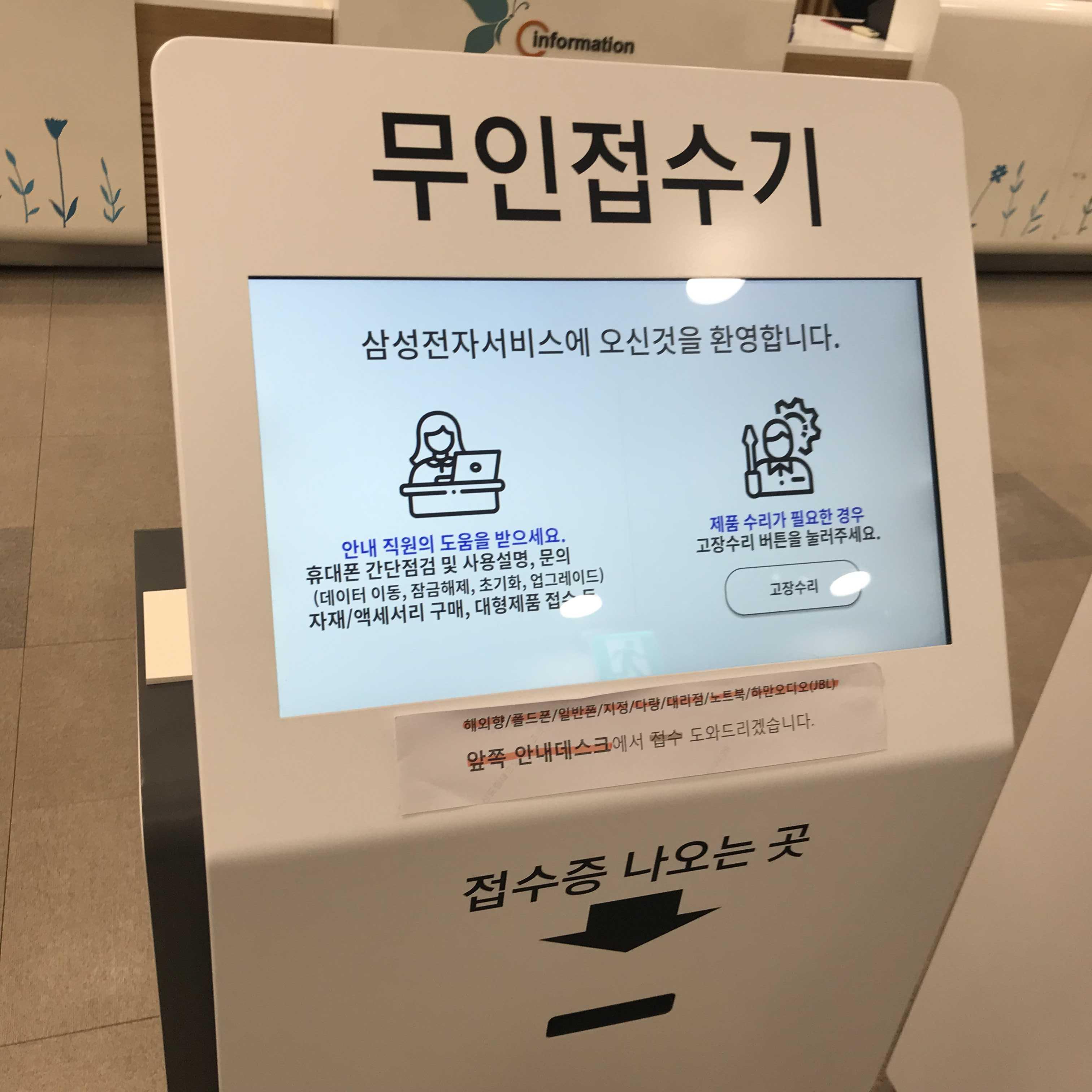 무인접수기에 접수를하고 핸드폰 수리 및