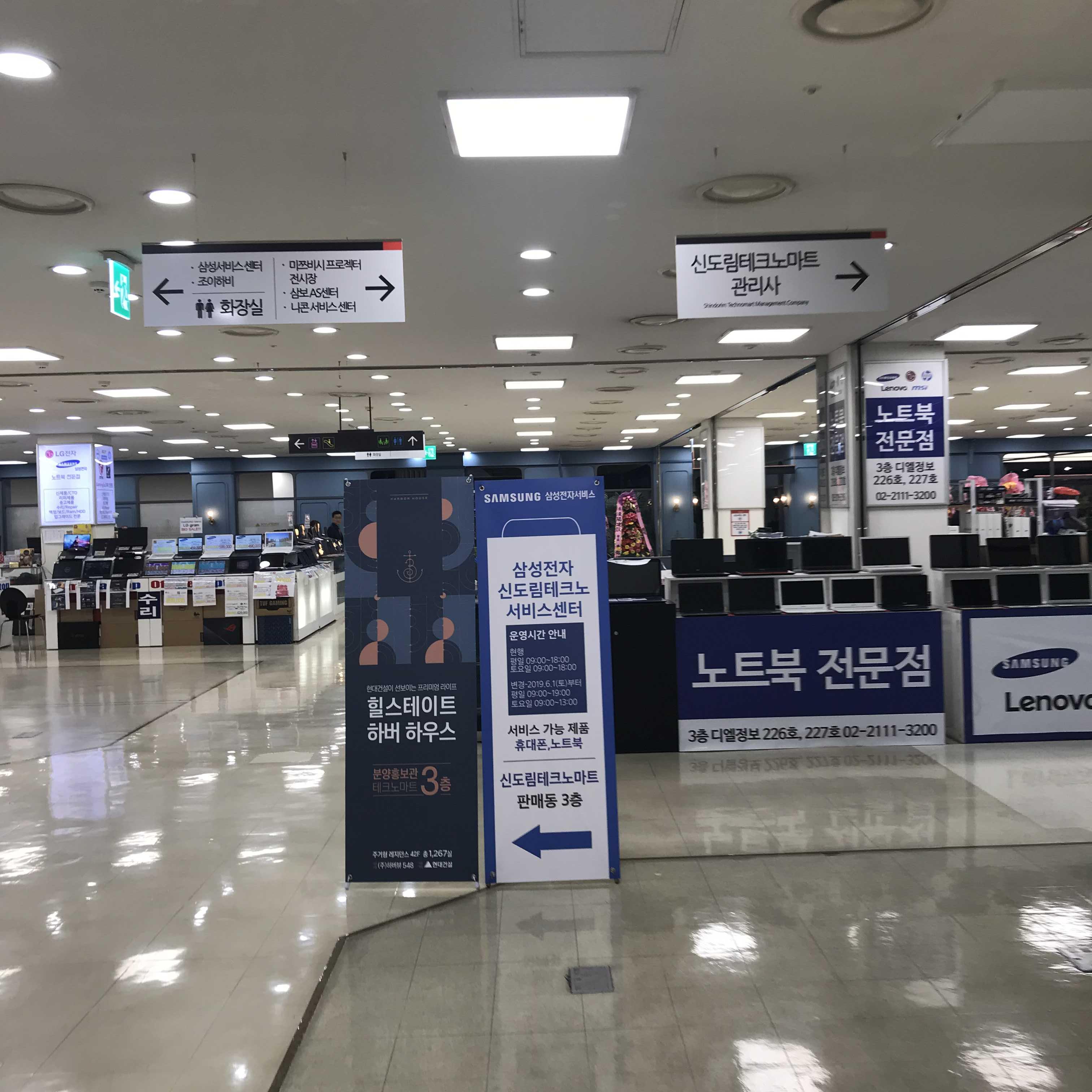 신도림 테크노마트 3층에 가면 각종 전자부품 상가들이 있는데 한쪽에 보니 삼성전자 서비스센터 신도림테크노점의 입간판이 보이더라구요.