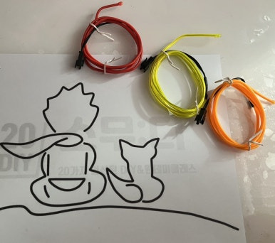 그렇게 그린후에 송곳으로 구멍을 뚫어서 네온선을 바느질하듯이 선에 맞게 넣어주면된답니다 ~