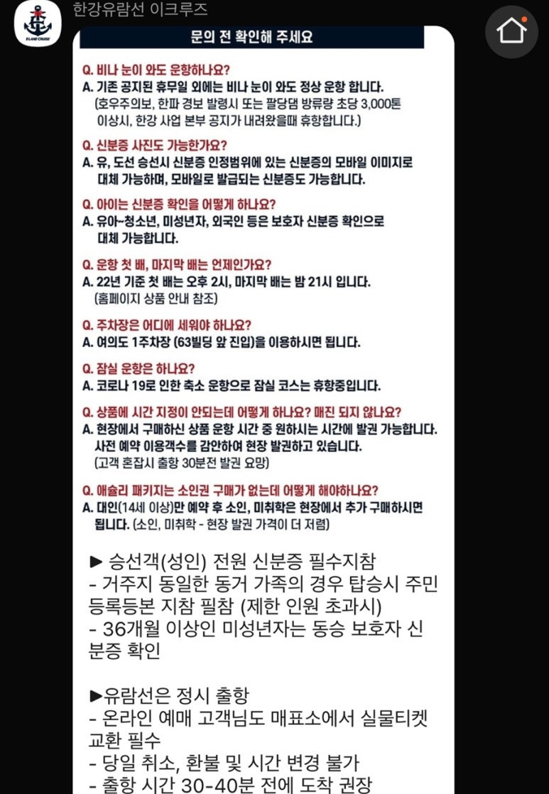 정시에 출항하기 때문에 미리 오시는걸 권해드려요