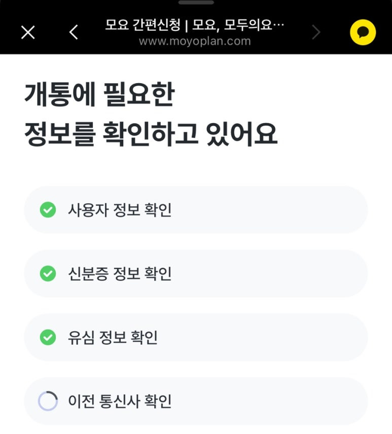 개통하기를 누르면 사용자 정보, 신분증 정보, 유심정보, 이전 통신사 등을 확인하게 되요~