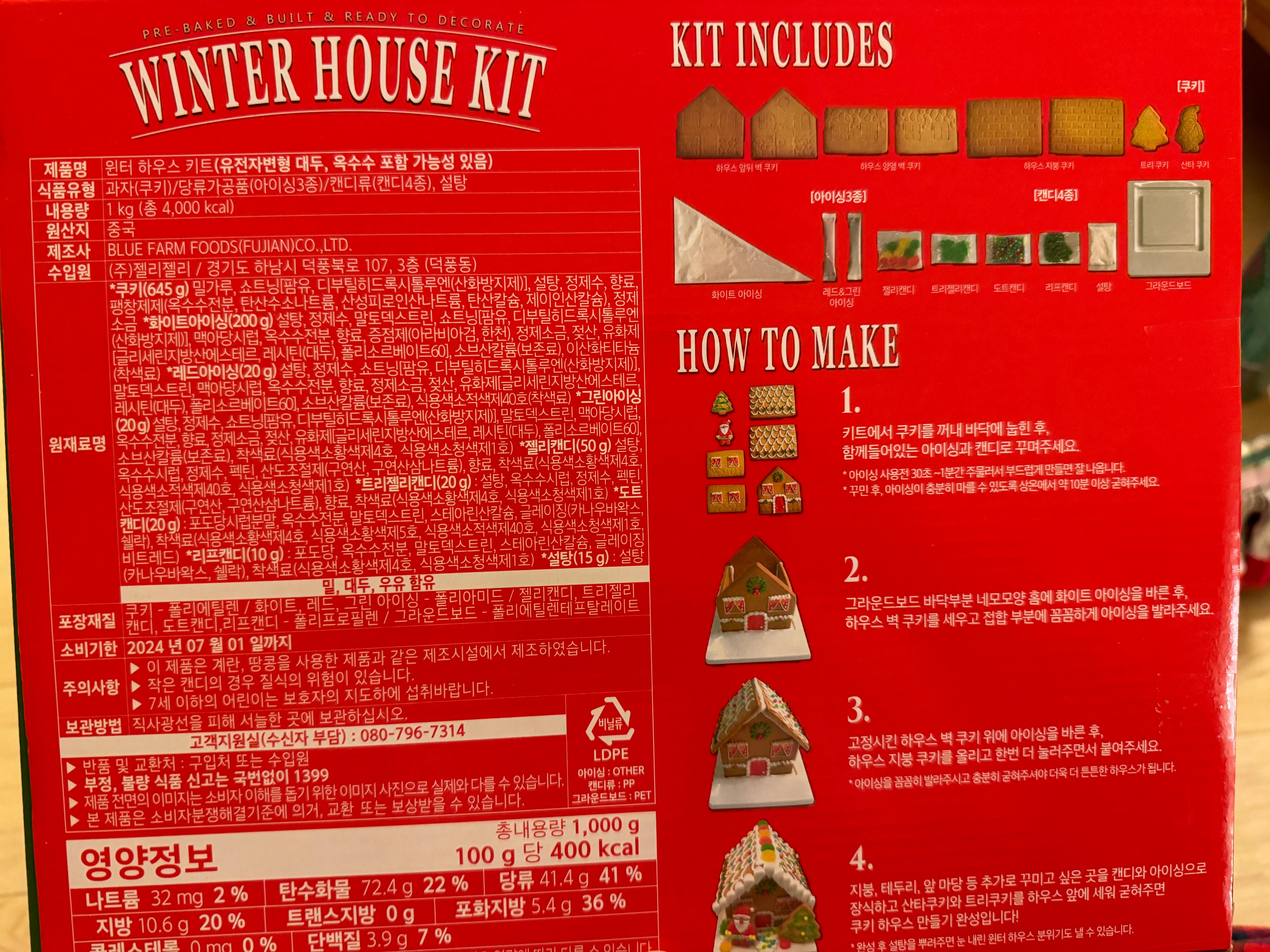 크리스마스 과자집 윈터 하우스 키트의 구성이에요