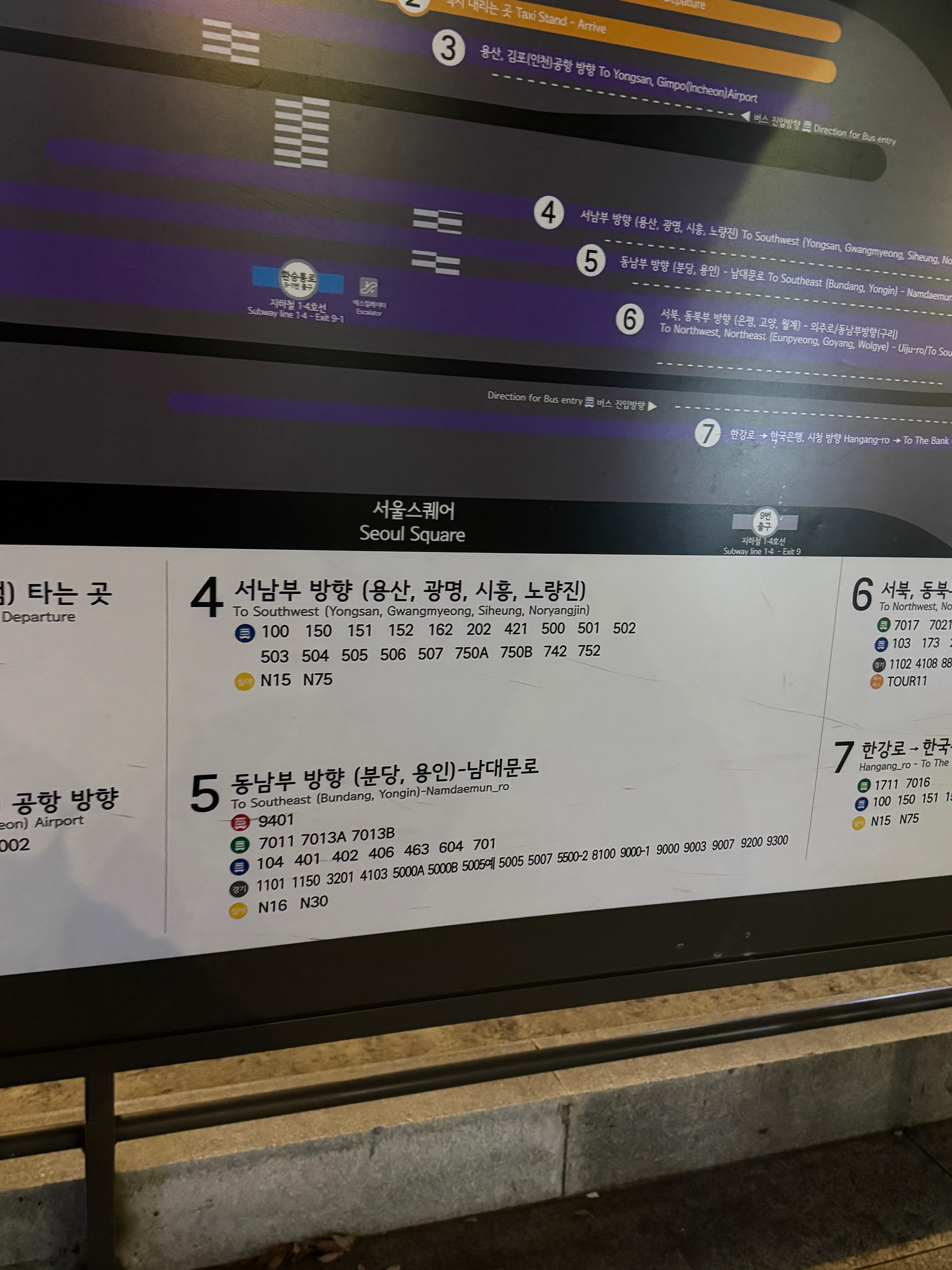| 5번 정류장 | 동남부 방향 (분당, 용인) - 남대문로 |