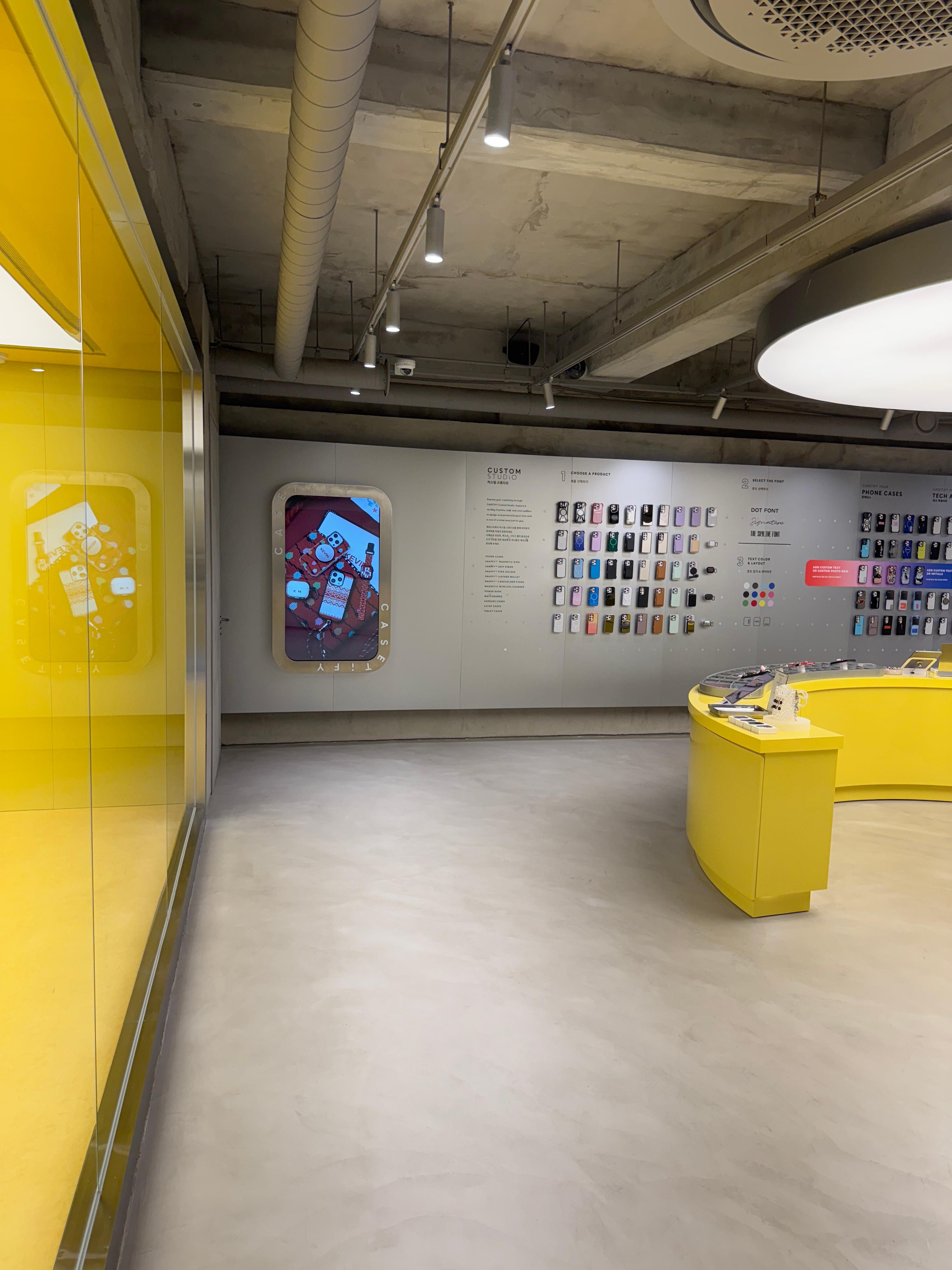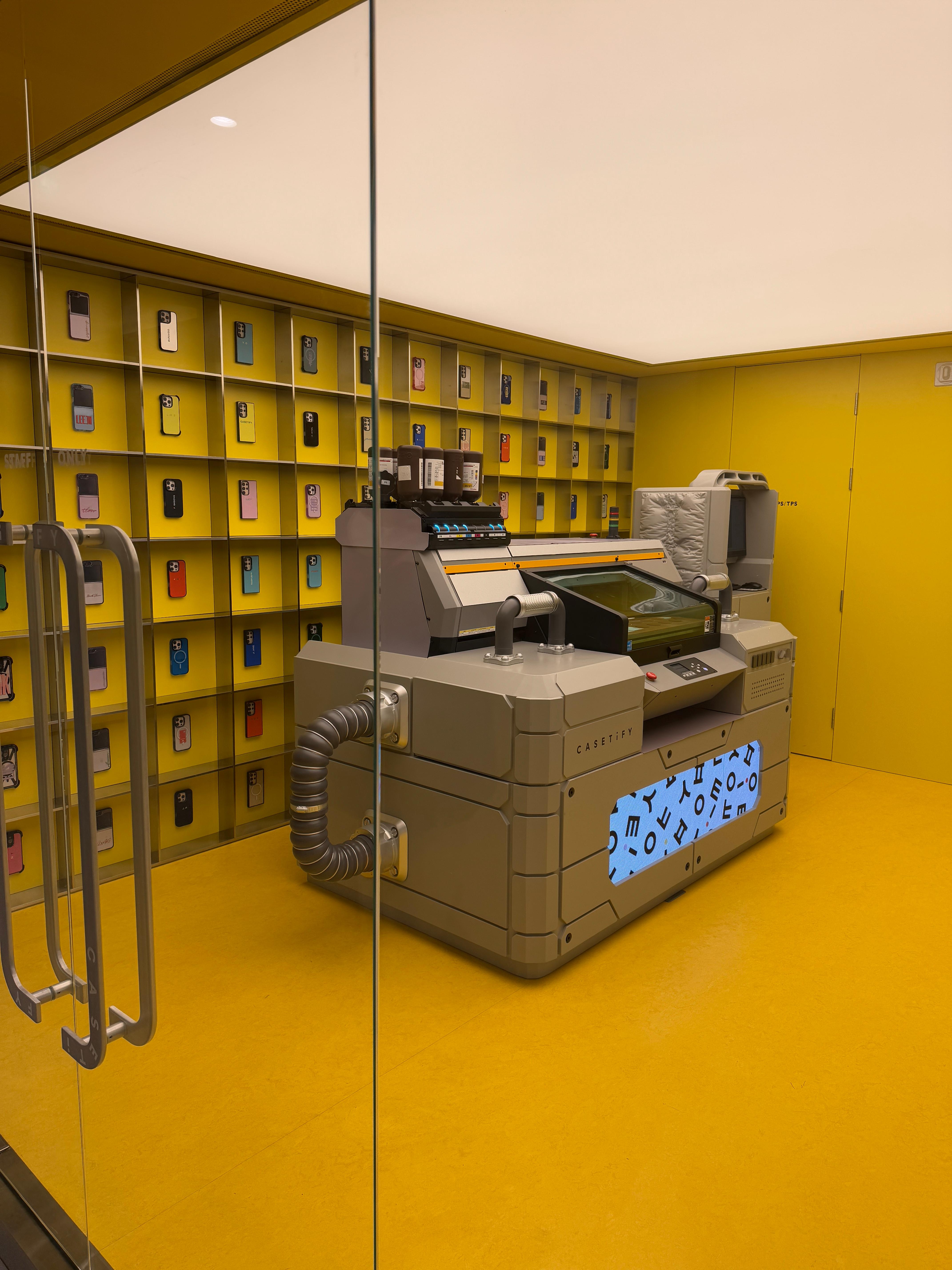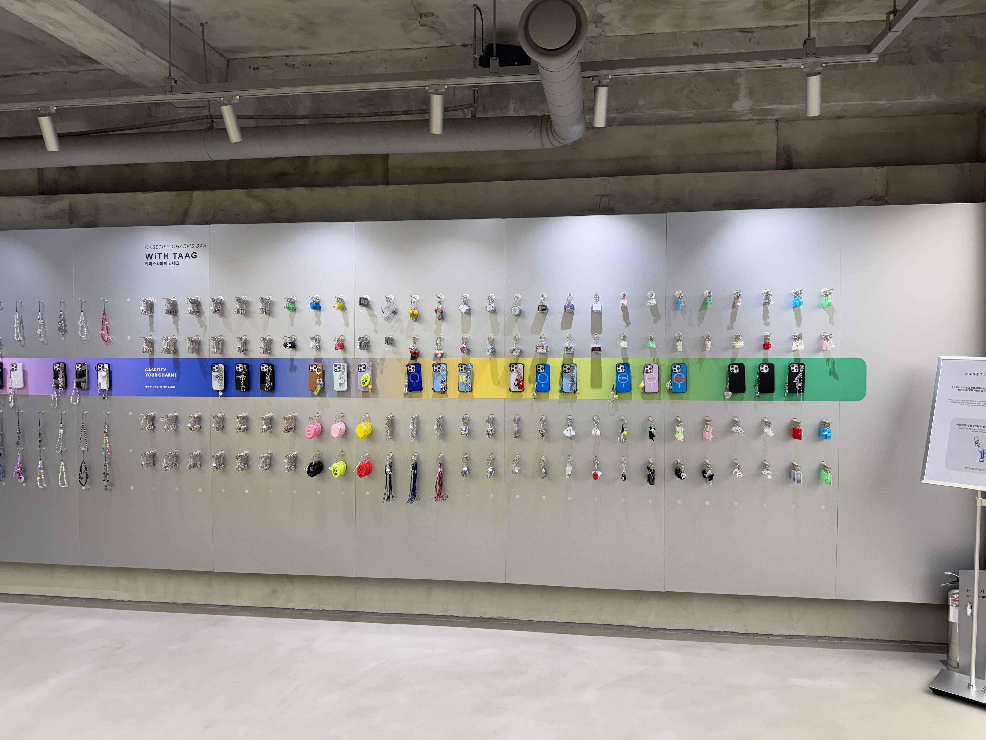 1층에는 거대하고 화려한 케이스가 있었어요 키링이 붙어서 케이스티파이의 상징성 같은 게 느껴졌어요 ~