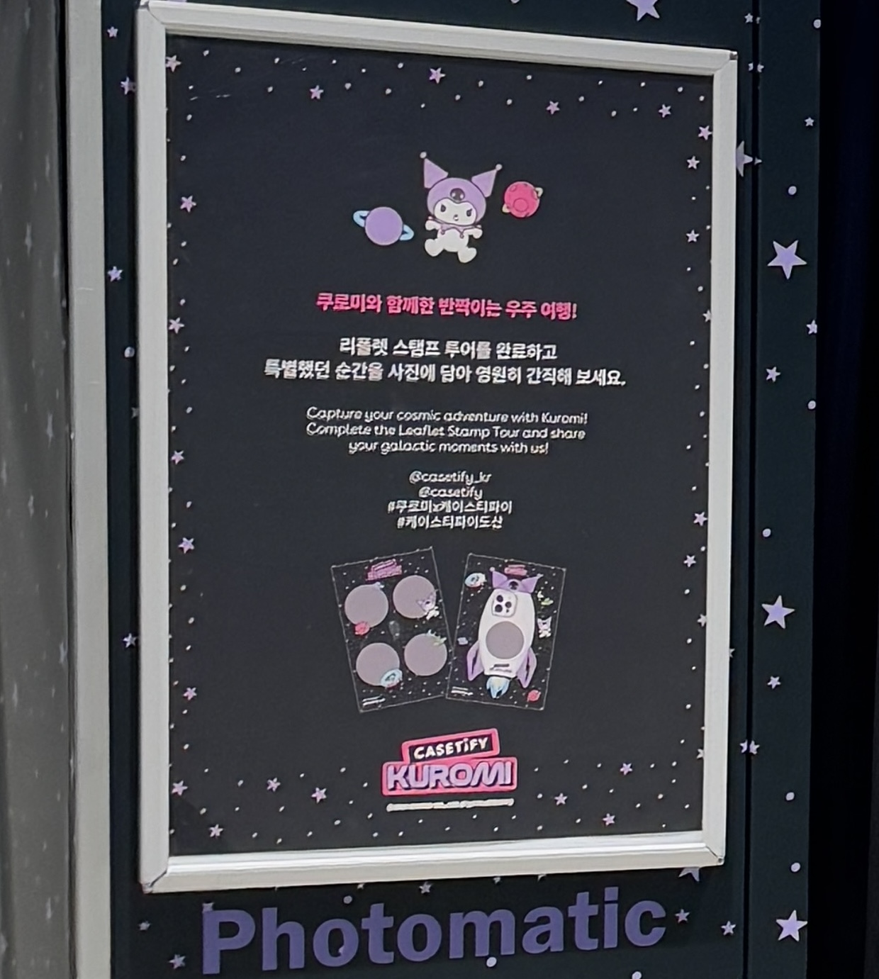 그리고 케이스티파이 도산 쿠로미 팝업 쿠로미 은하계 본부에 오셔야 하는 이유는 바로 이 포토부스가 있다는 사실이에요~