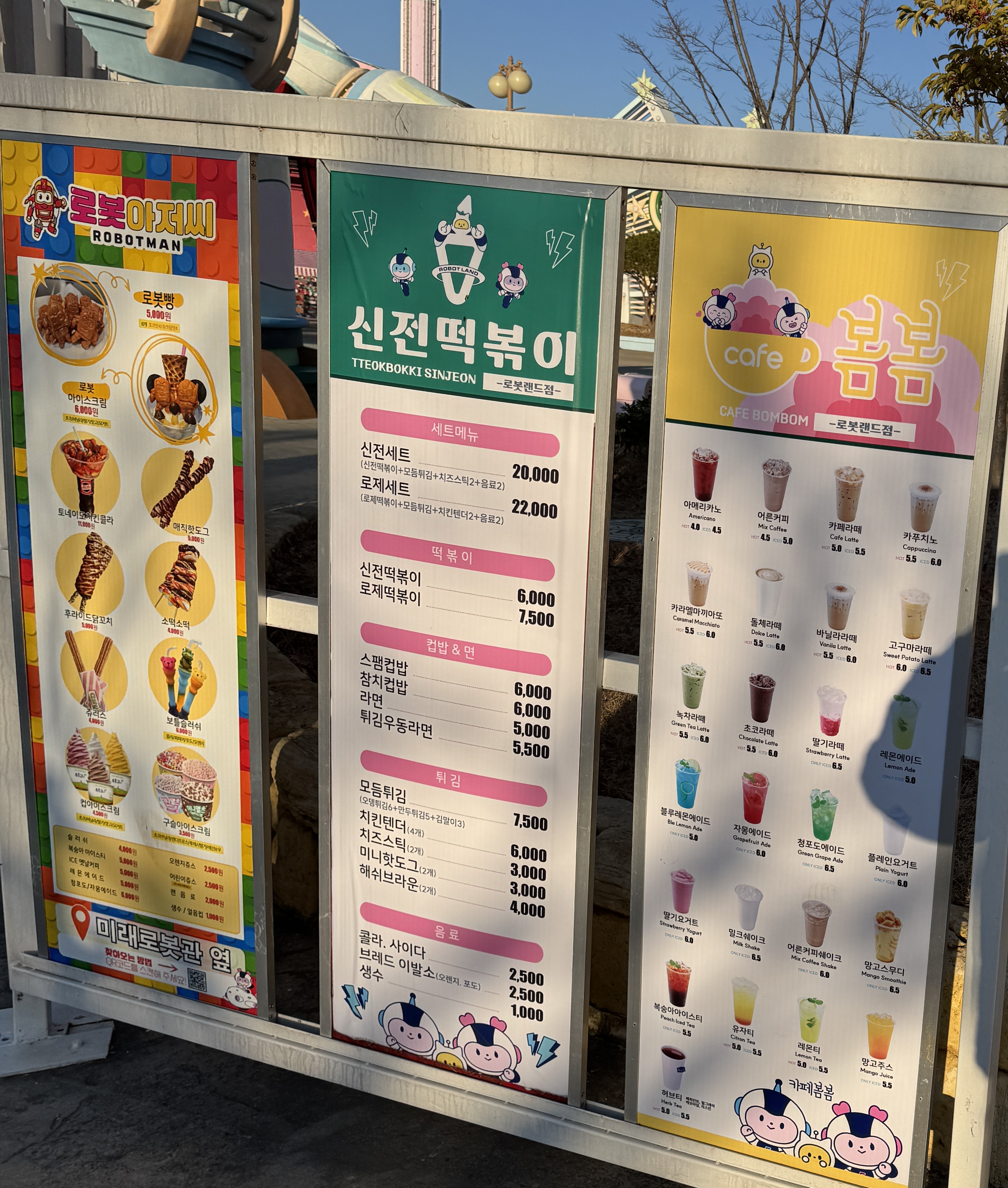그리고 로봇랜드 안쪽에 보시면 각종 간식들을 파는 식당들이 있어요~ 중국집과 떡볶이집도 있답니다~