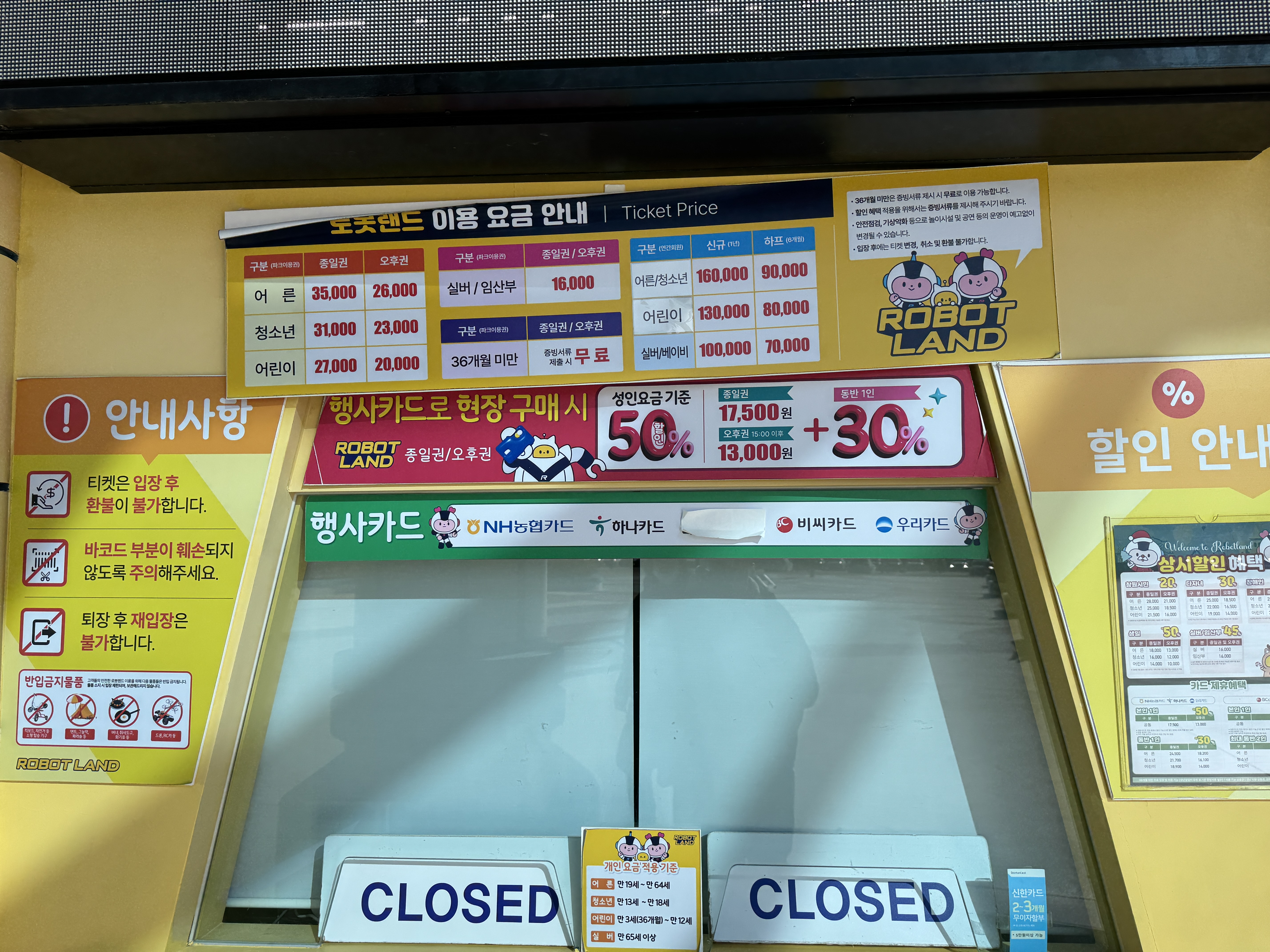 마산 로봇랜드 입장권 가격안내에요~ 종일권과 오후권 2가지가 있어요~