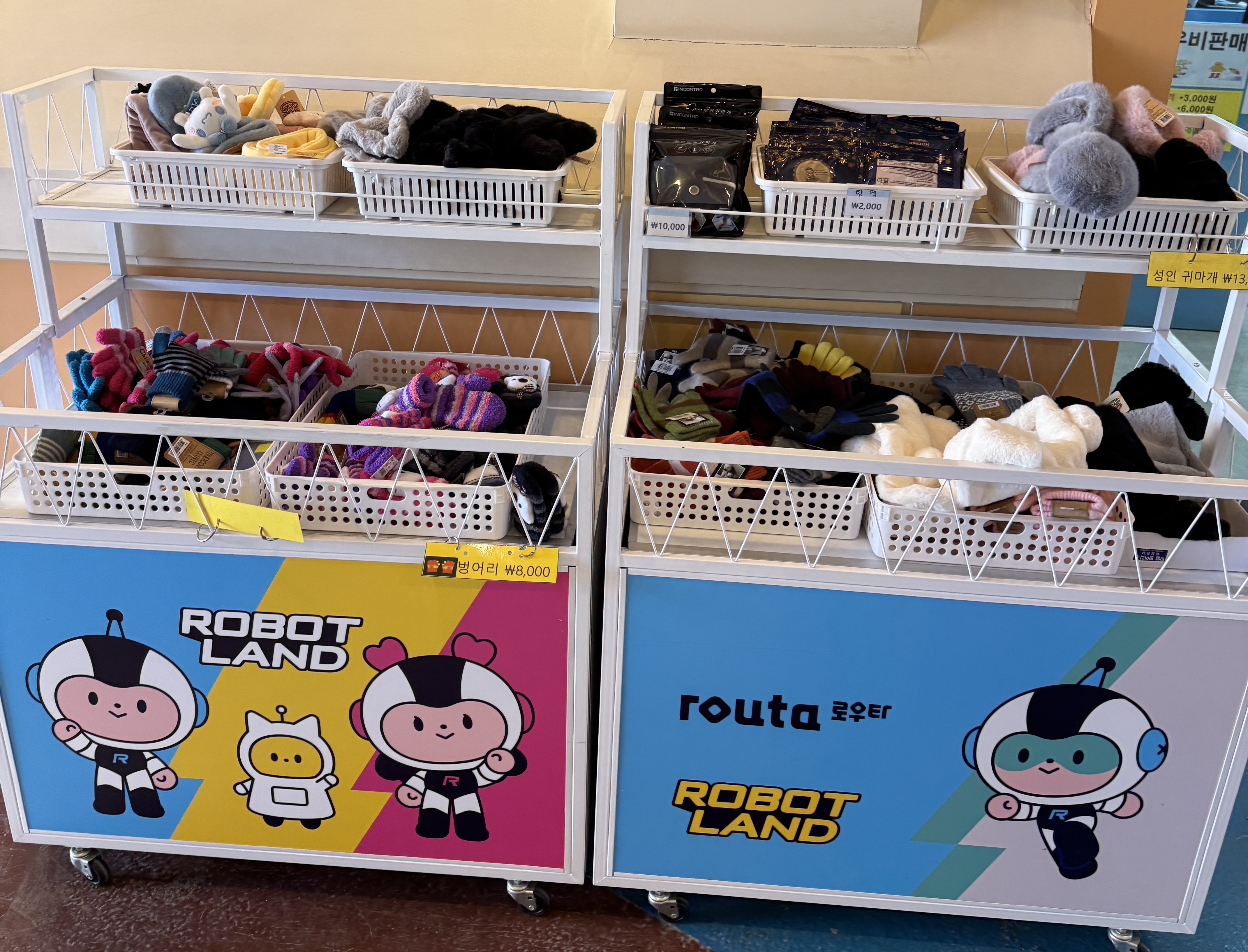 놀이기구를 타다보면 손이 시리거나 목이 춥거나 귀가 시리거나 할 때 귀도리나 장갑, 방한용품 등을 구매할 수 있어요~ 혹시나 못챙기신분들 입구에서 구매하셔도 괜찮겠어요~