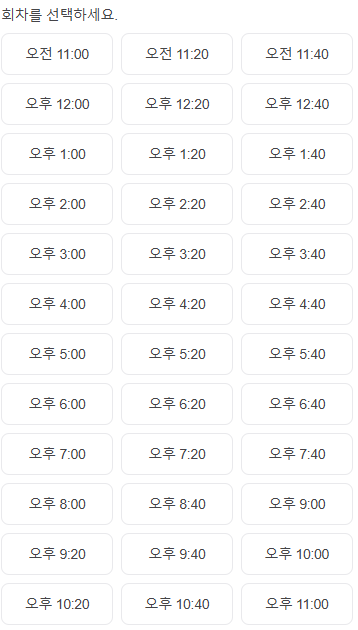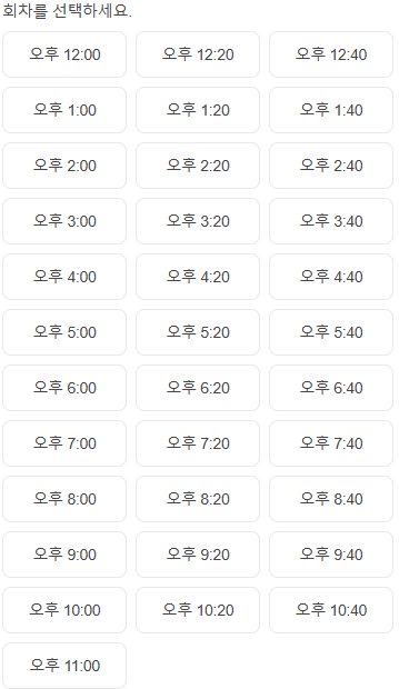네이버 예약으로 들어가면 시간이 쭉 나와있는데 시간이 20분단위로 있었어요