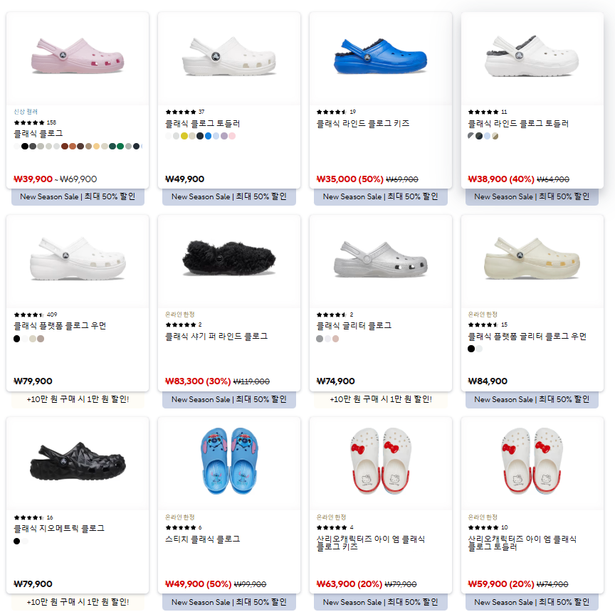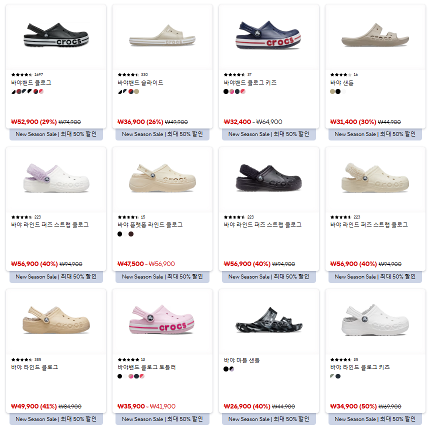 크록스 홈페이지에 가면 다양한 크록스 종류가 있어요~
