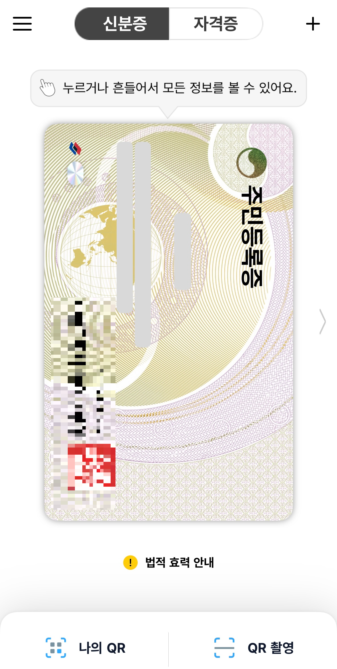 모바일 주민등록증 발급하면 주민센터에서 QR코드를 보여주시는데 촬영을 하면 된답니다~