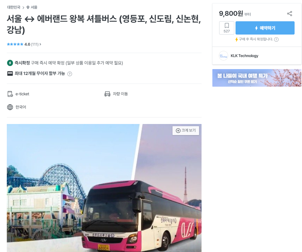 그래서 얼마전에 찾아보다가 에버랜드 왕복 셔틀버스가 있어서 구매해서 편하게 다녀왔어요~