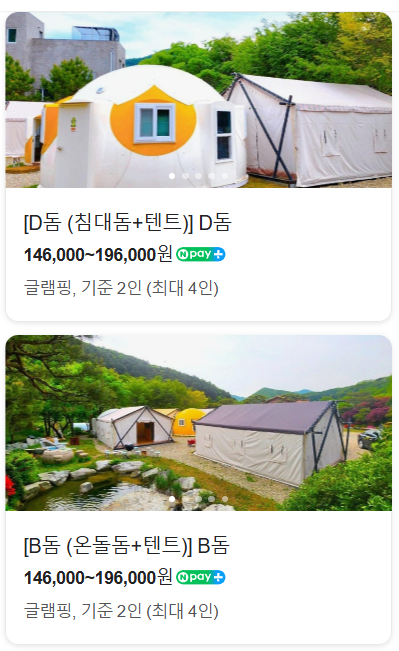 O돔, D돔, C돔은 침대돔과 텐트이고 B돔은 온돌돔과 텐트에요~