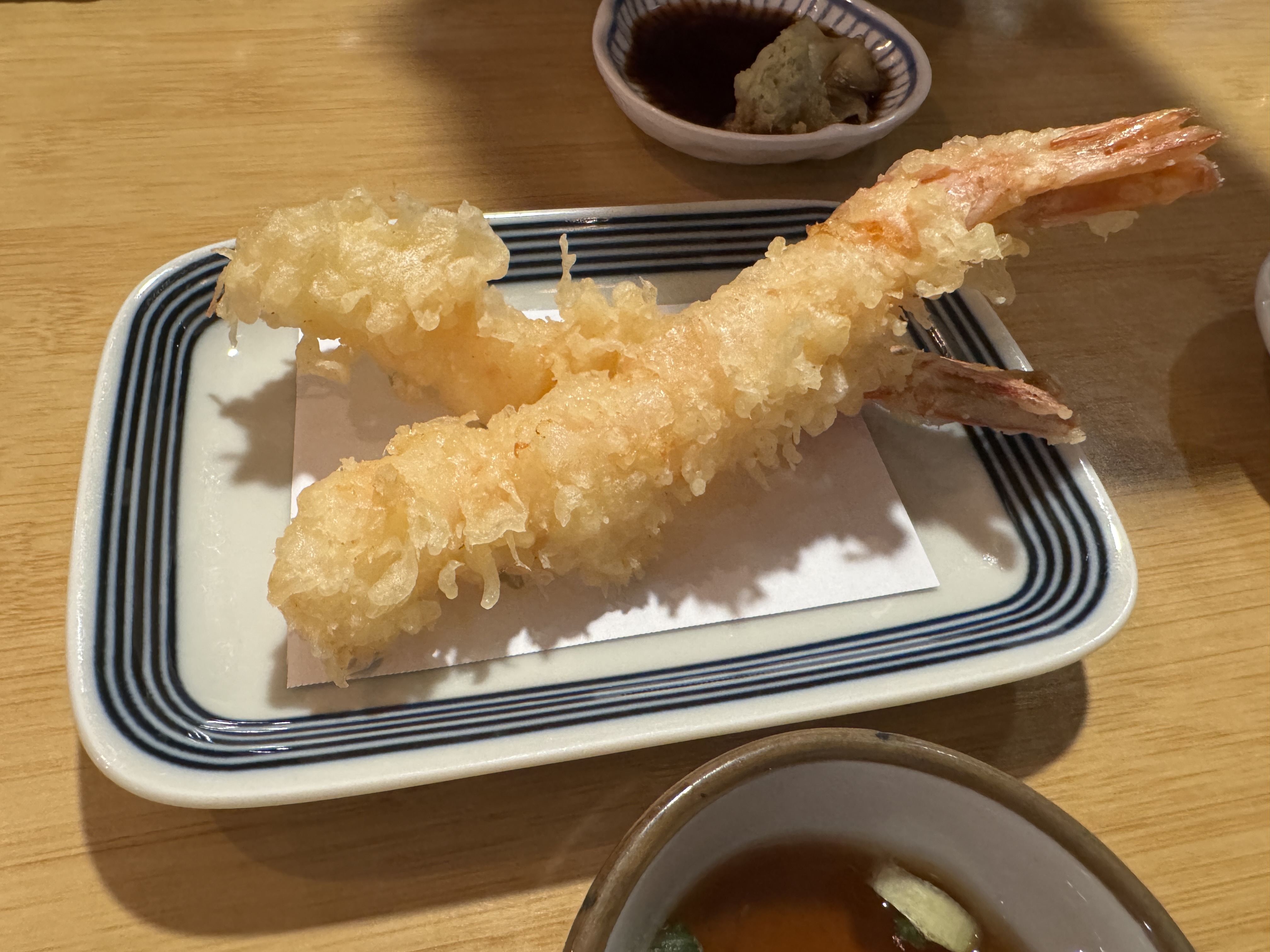 튀김은 1인 새우튀김 1개씩 인데 가볍게 먹기에 좋고 간장에 살짝 찍어먹으니까 자극적이지 않고 고유의 새우맛과 얇은 튀김옷이 맛있었던거같아요~