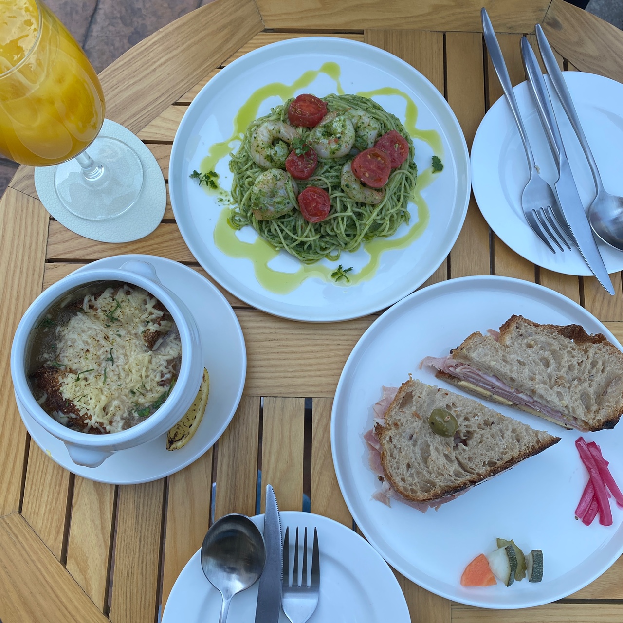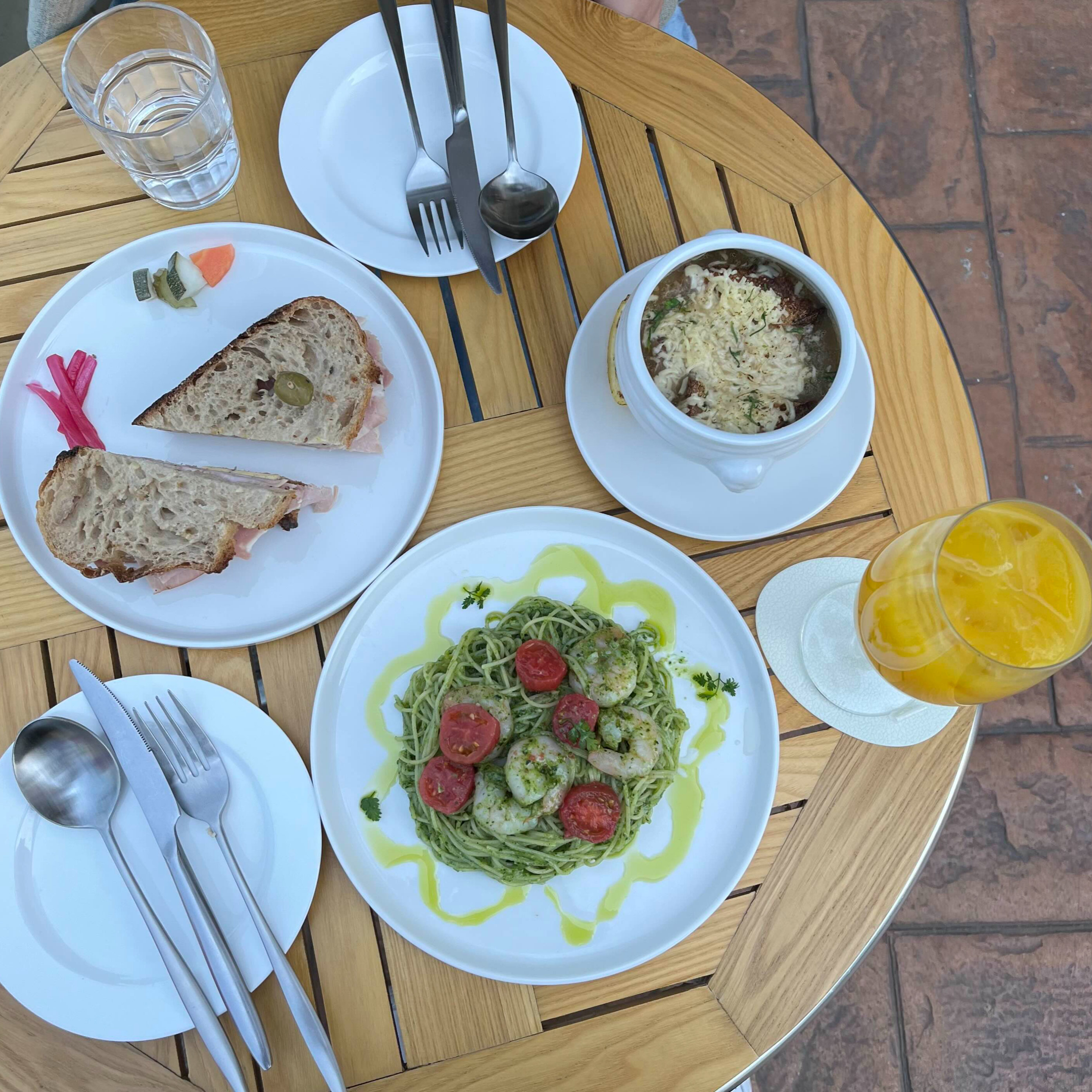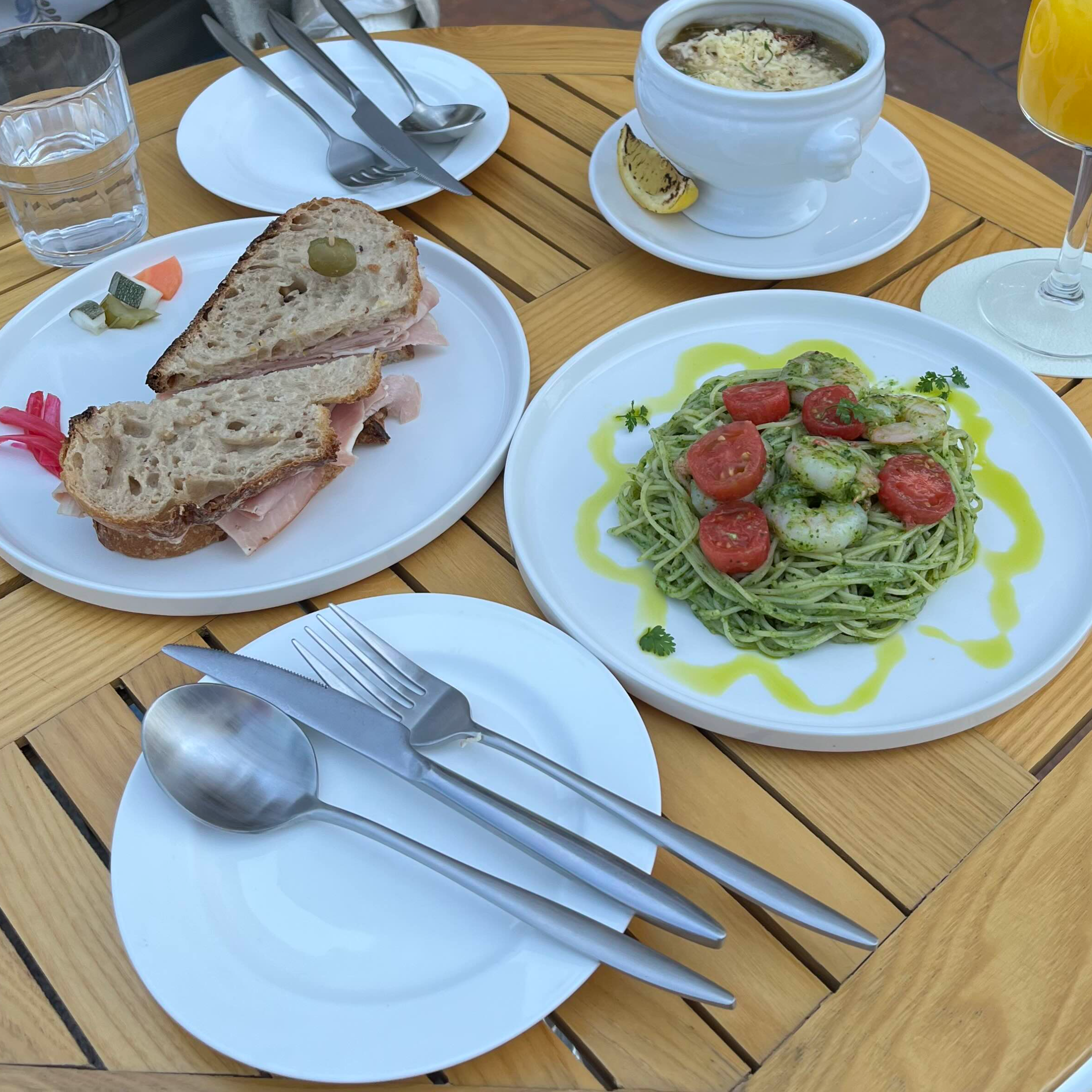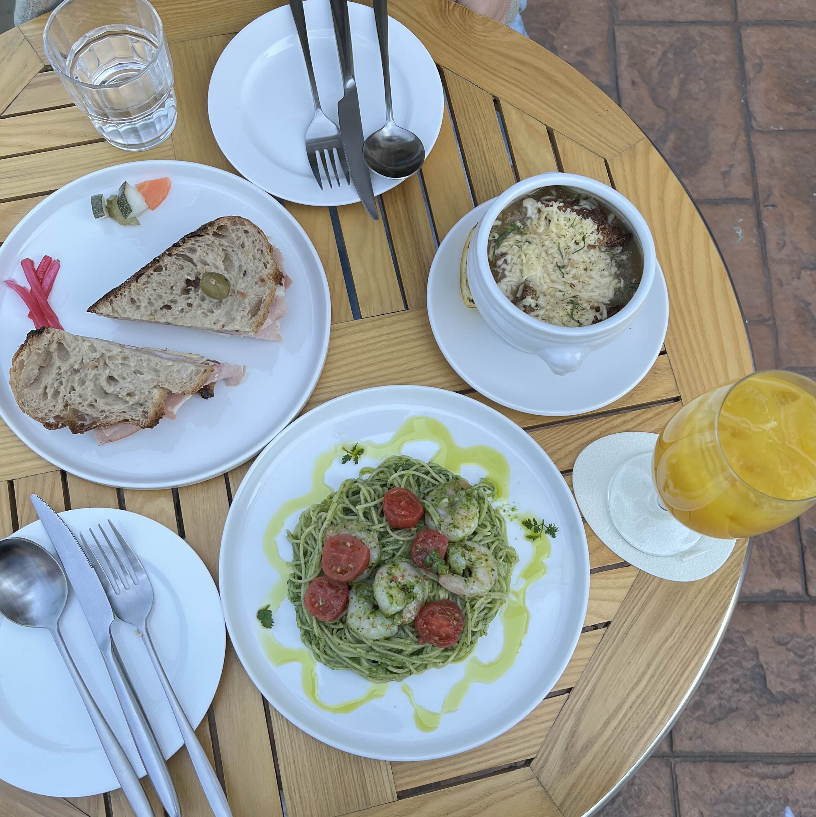 석촌호수 맛집 석촌호수 브런치 맛집 석촌호수 뷰 맛집 몽가 잠봉뵈르 어니언 스프 파스타맛집에서 그린파스타, 트러플잠봉뵈르 샌드위치, 몽가 어니언 스프, 착즙 오렌지 주스 등을 주문했어요~
