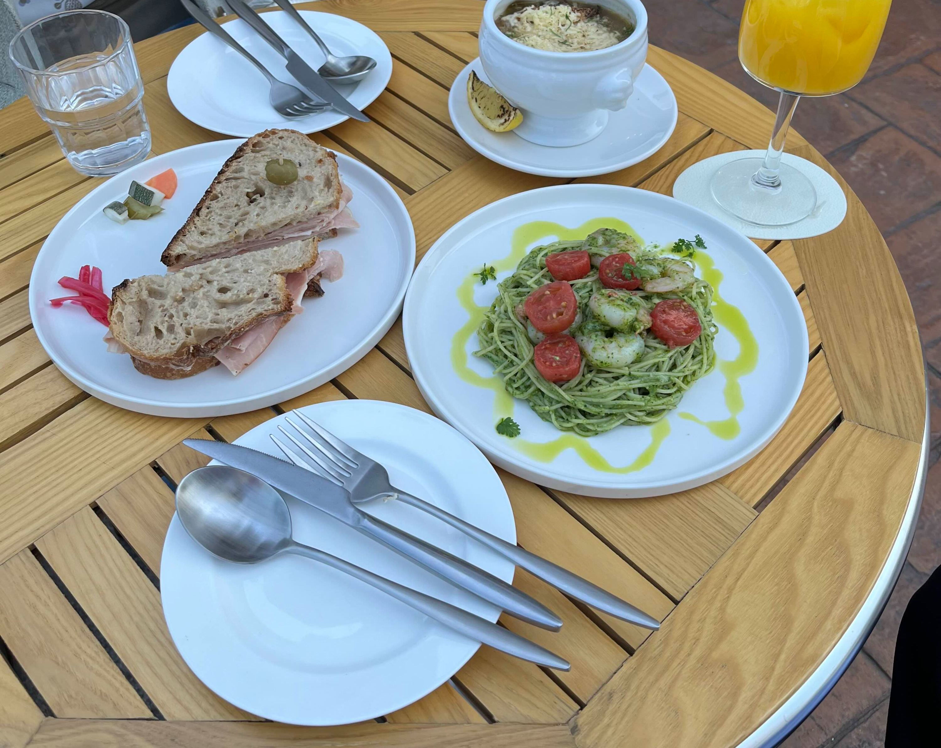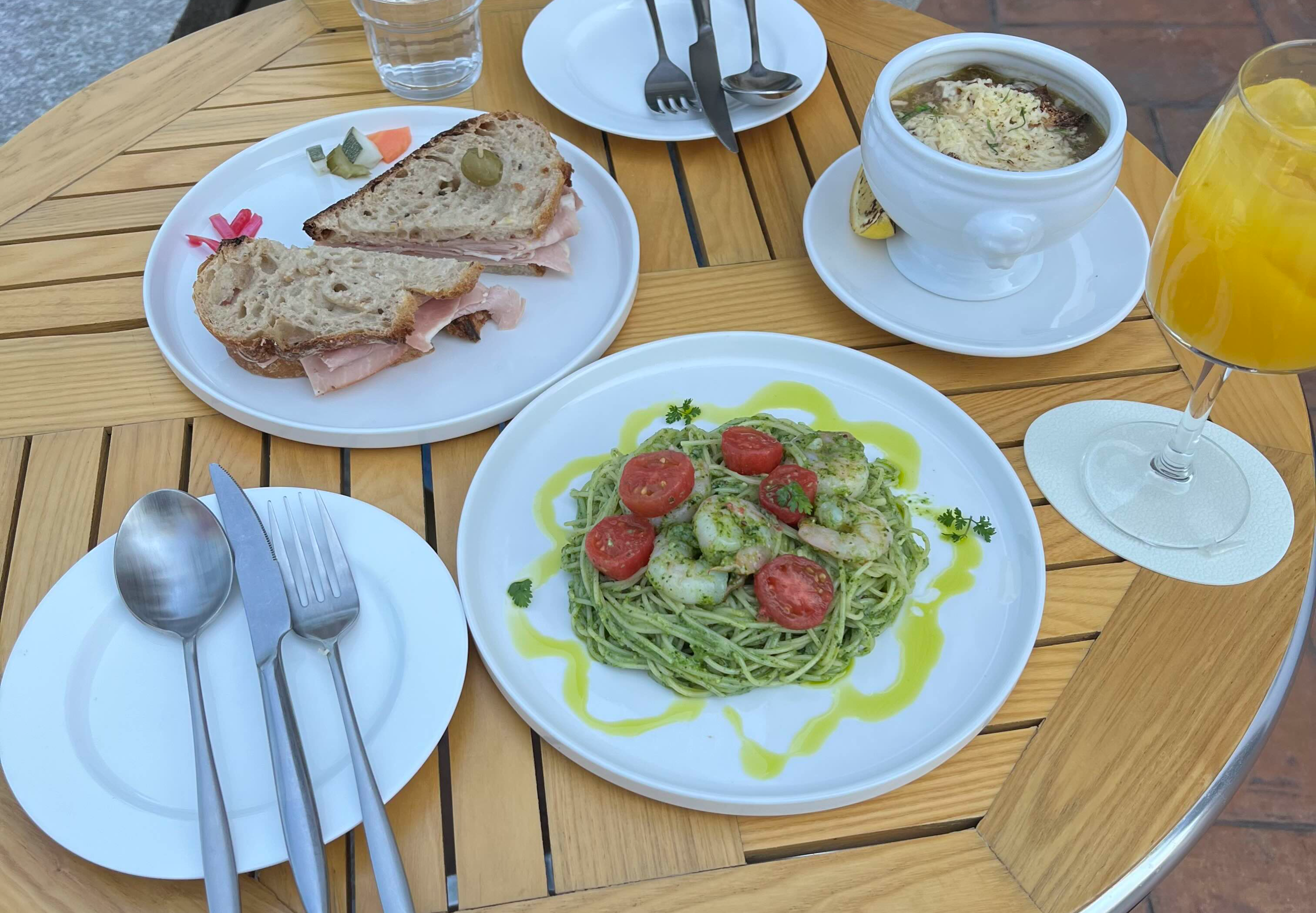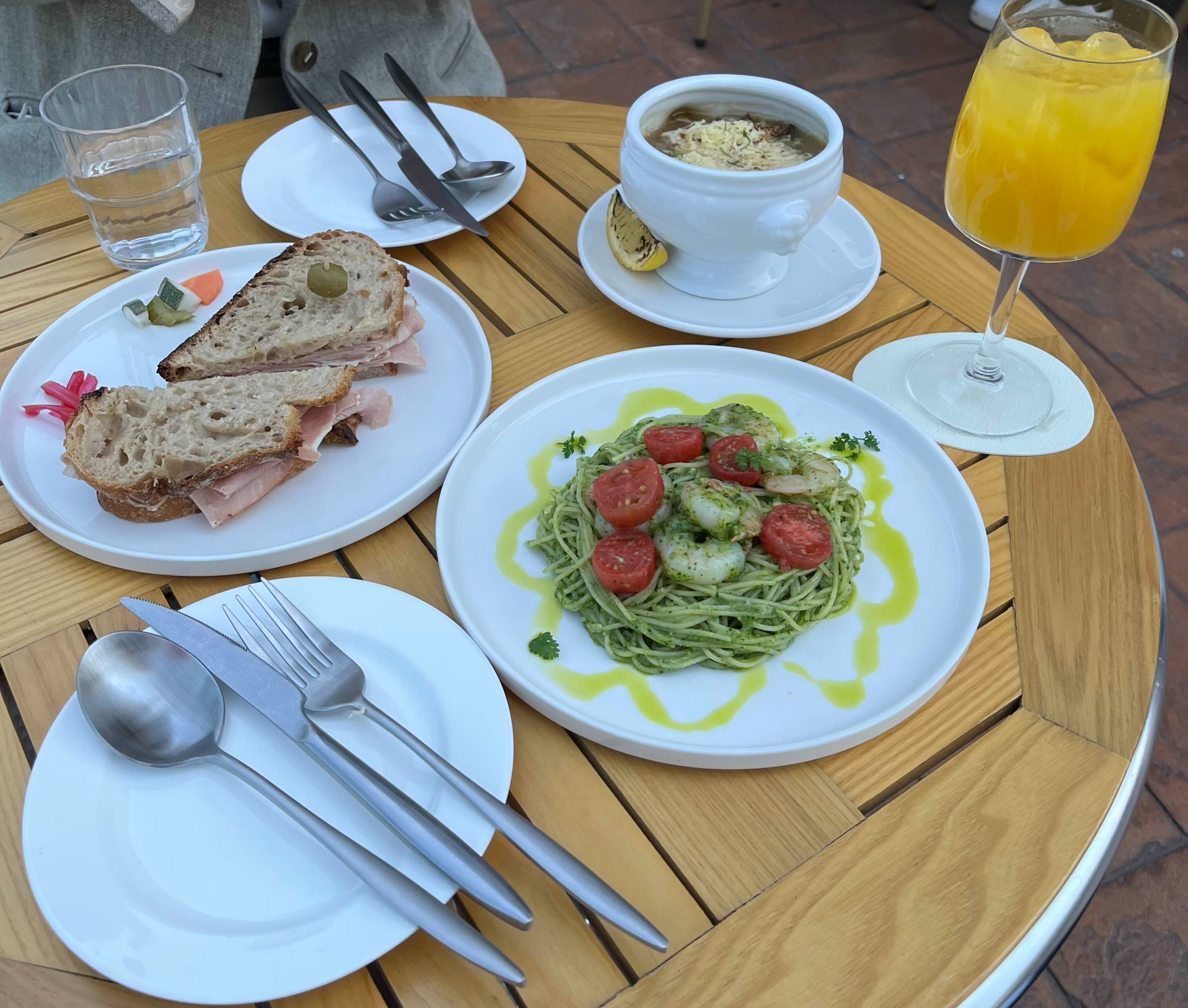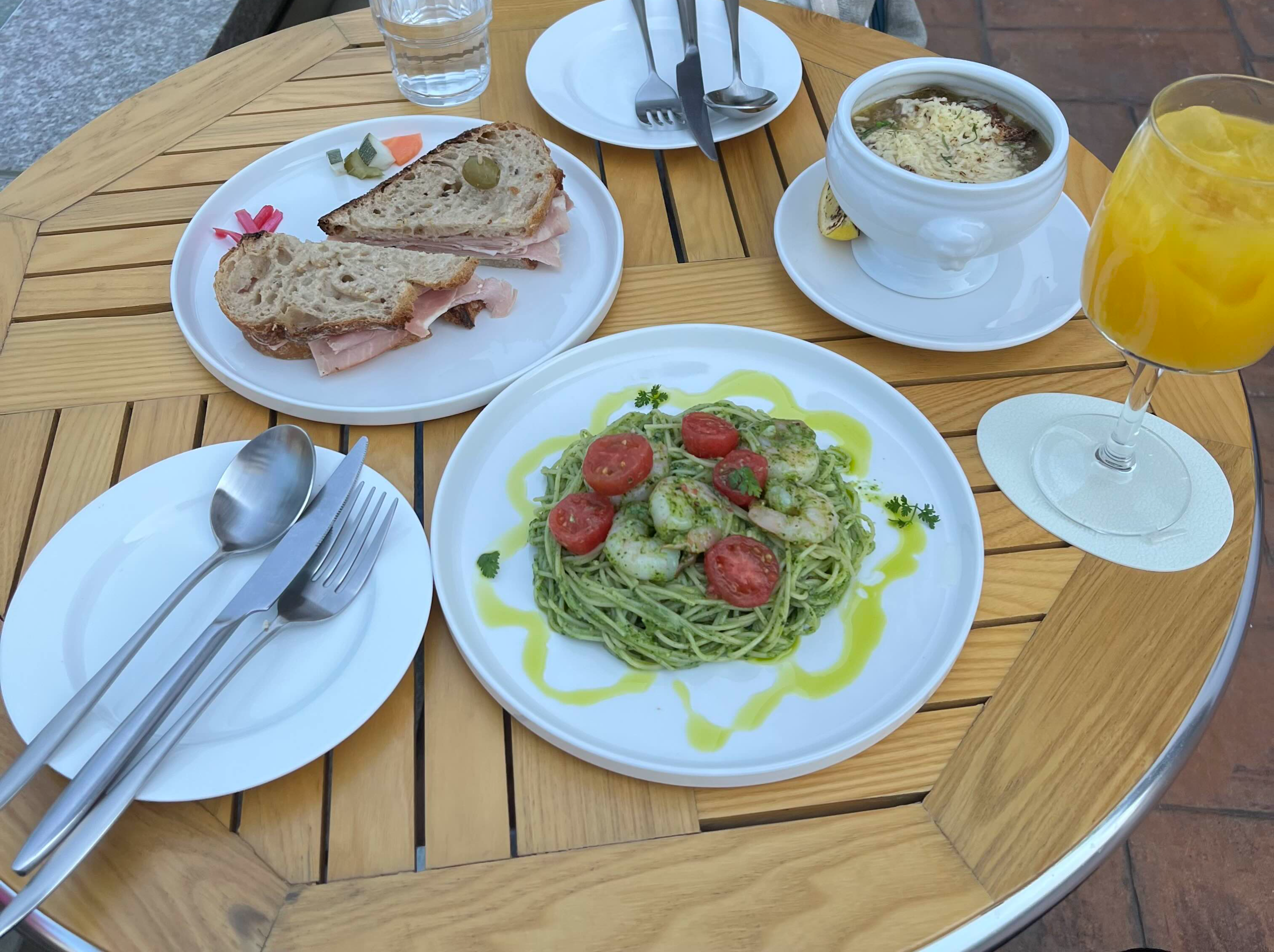 석촌호수 맛집 석촌호수 브런치 맛집 석촌호수 뷰 맛집 몽가 잠봉뵈르 어니언 스프 파스타맛집에서 그린파스타, 트러플잠봉뵈르 샌드위치, 몽가 어니언 스프, 착즙 오렌지 주스 등을 주문했어요~