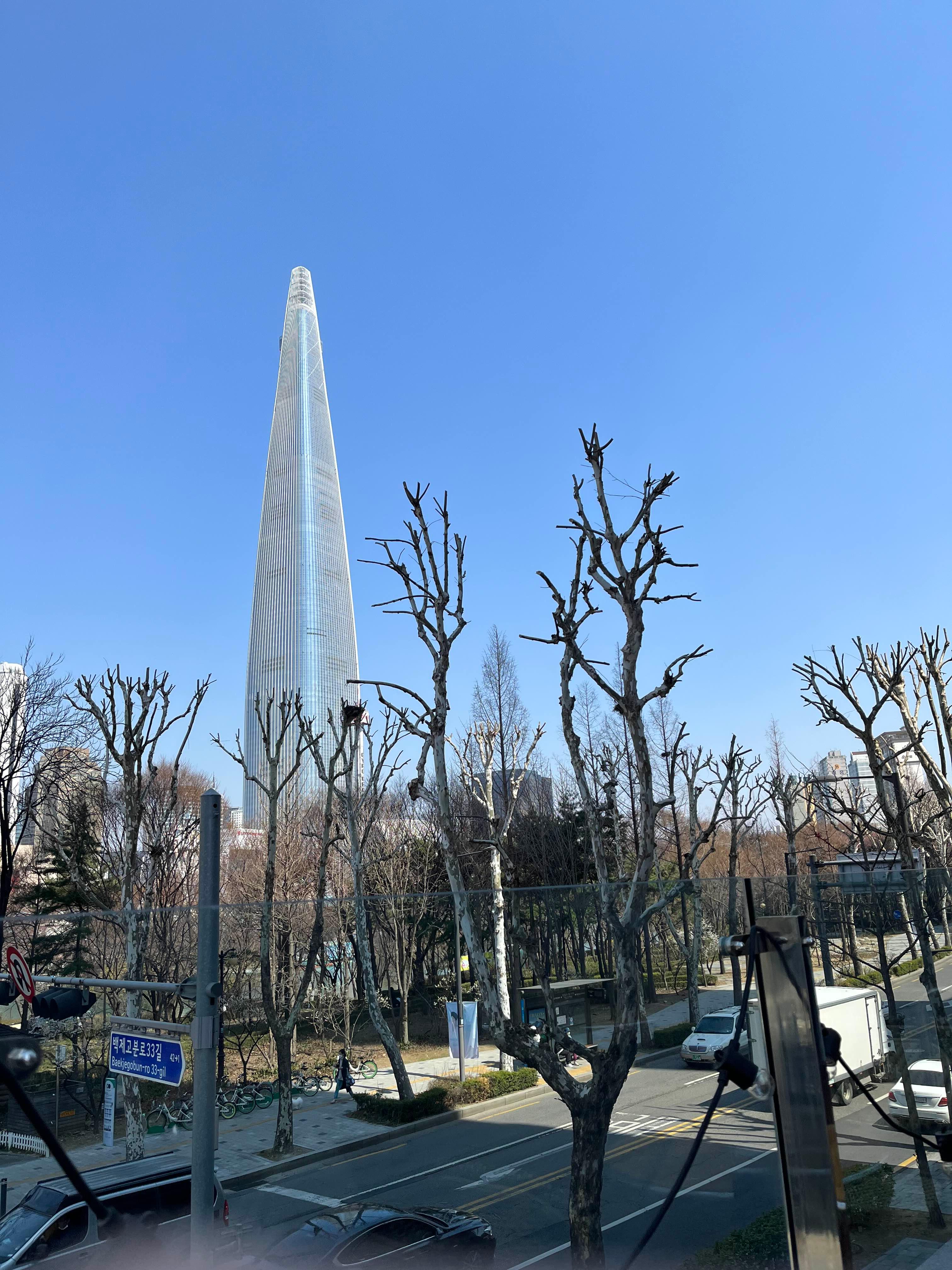 이곳은 석촌호수 서호 근처에 있는데 바로 건너편에 있기 때문에 바로 이렇게 롯데타워 뷰를 볼 수 있어요~