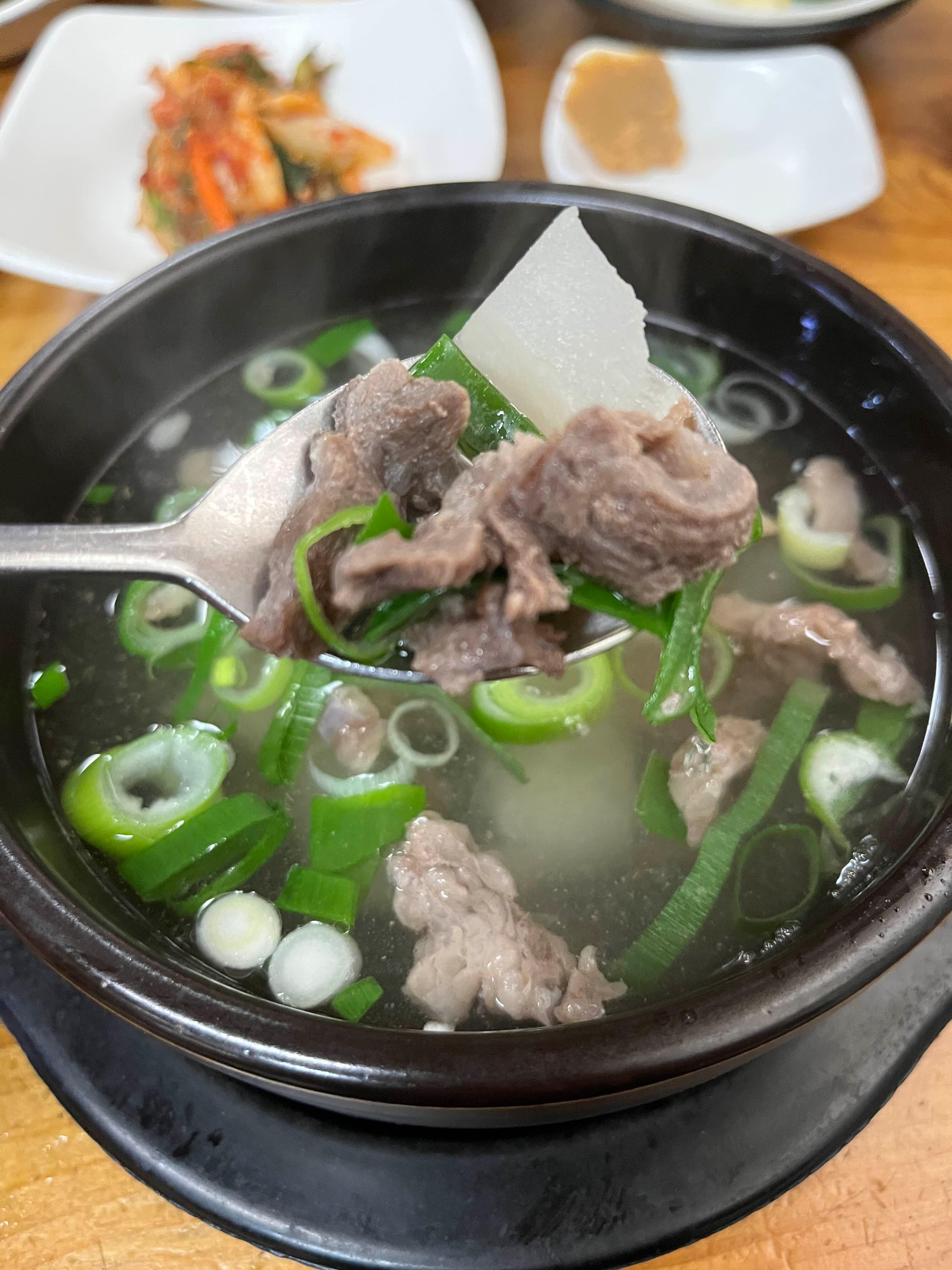 왜냐하면 따뜻하니 속이 데워지는 느낌이었고 같이 나온 고기도 맛있고 파와 함께 먹으니 호로록 떠먹게 되더라구요~