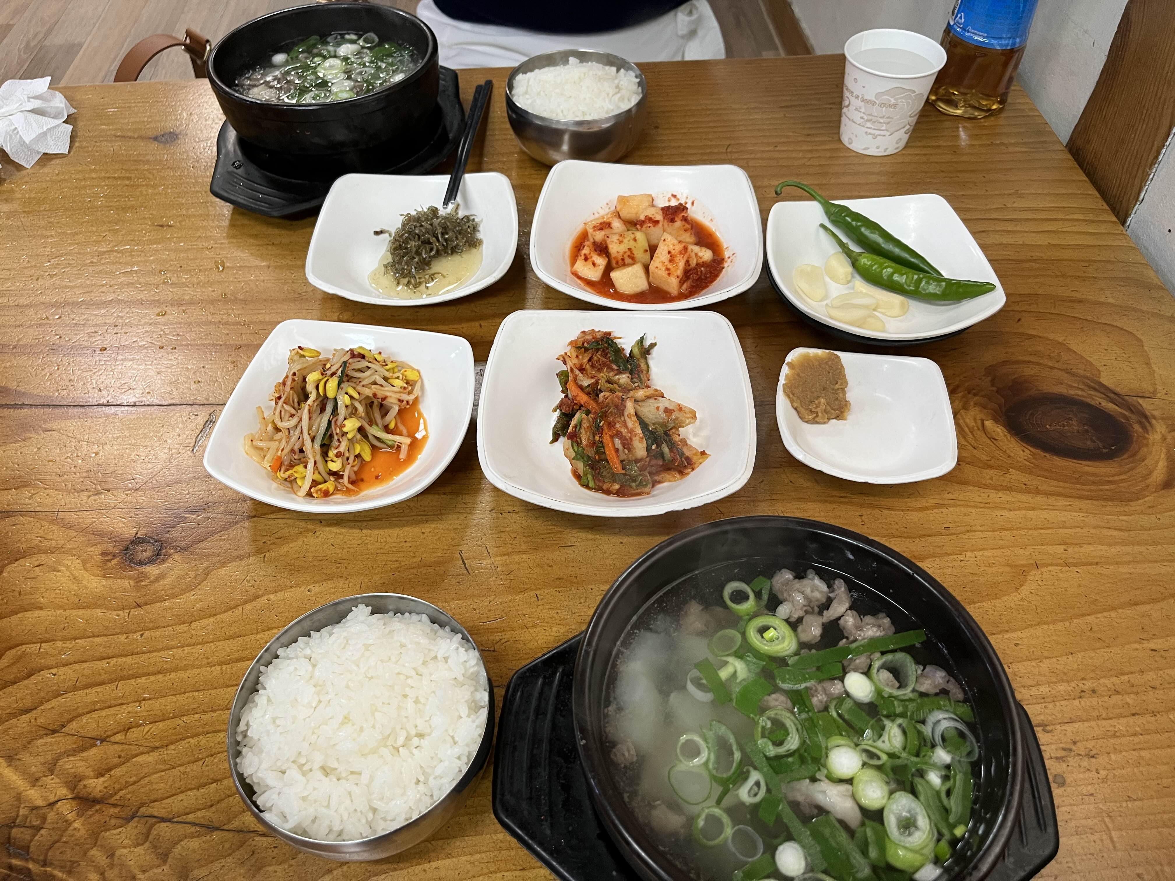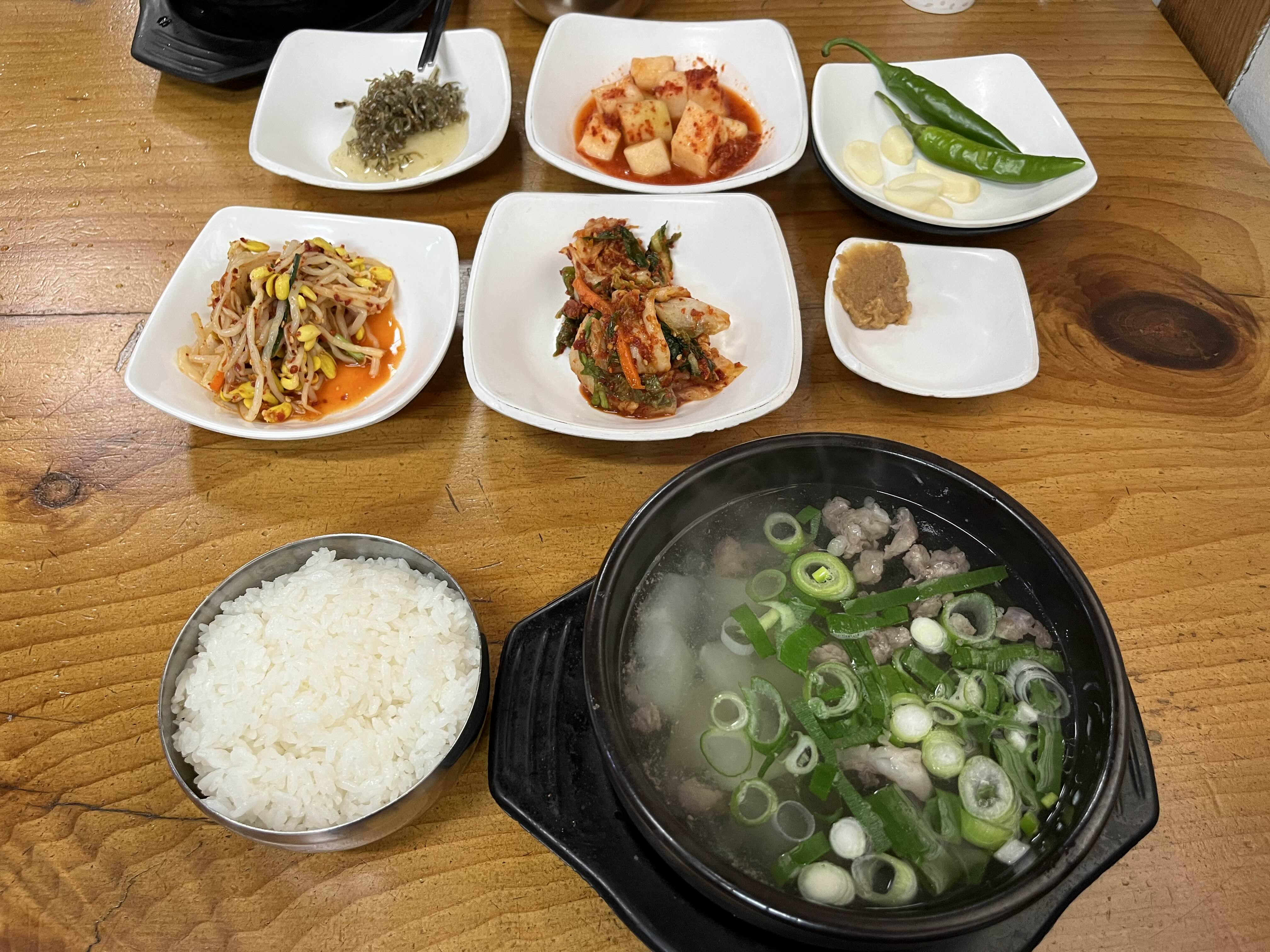 같이 나온 반찬은 고추와 마늘 김치 깍두기 콩나물무침 멸치볶음등이었어요~