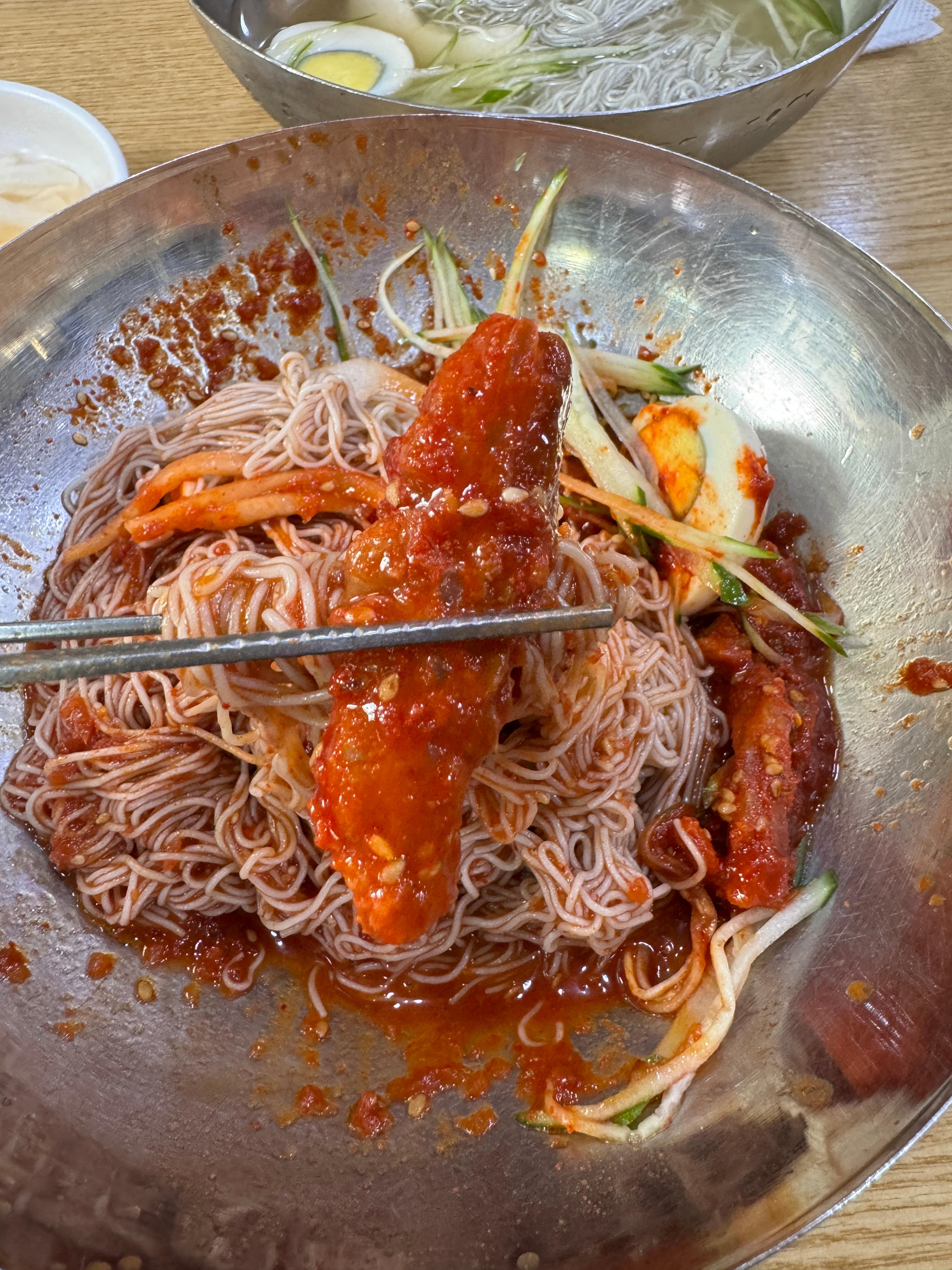 회냉면에는 양념이 달달하면서 짠짠 단짠느낌으로 적당히 고춧가루와 꾸덕한 소스가 잘 버무러져서 맛있었어요
