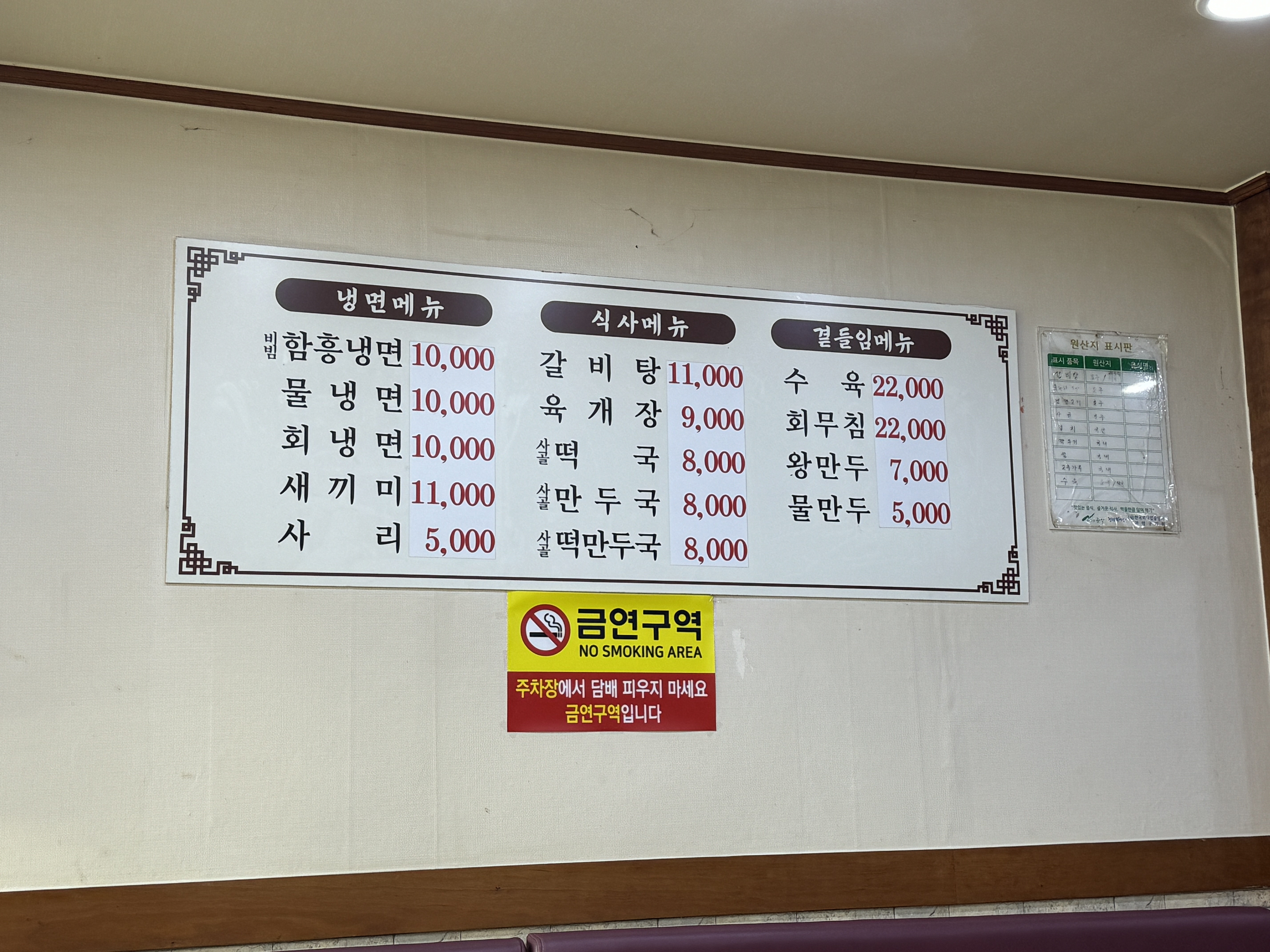 낙성대 냉면 맛집 함흥냉면 물냉면 비빔냉면 수육 맛집 메뉴판이에요~