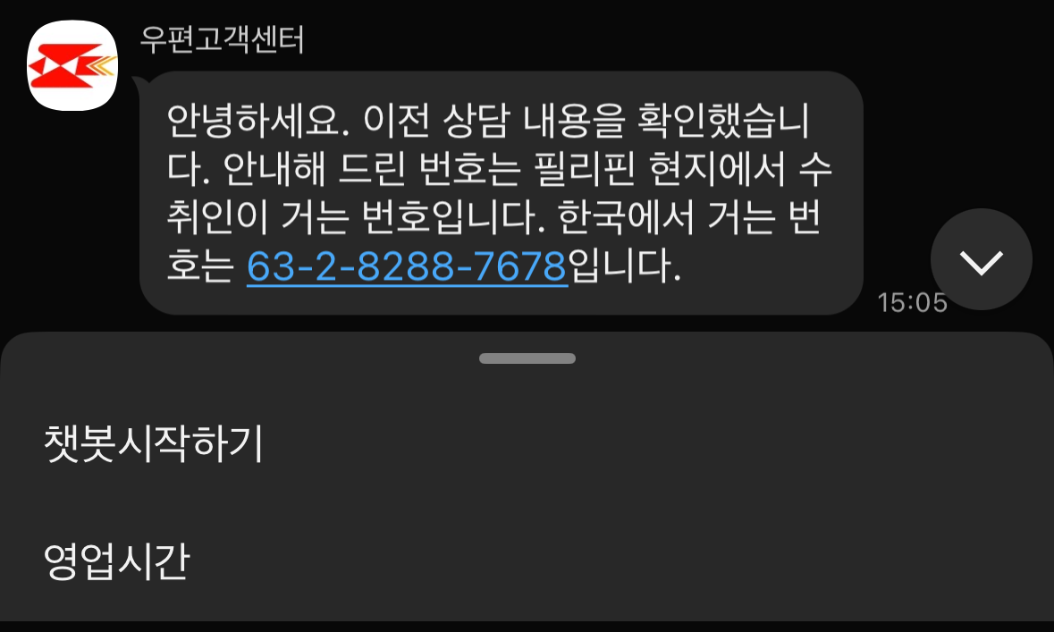 우체국택배 직원분말로는 필리핀까지는 일주일 정도 걸린다고 하셨어요!