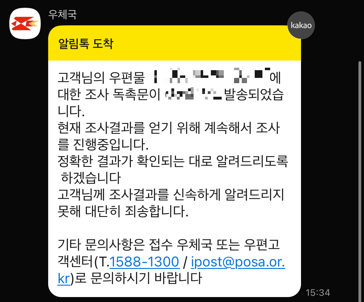 우체국택배 행방조사청구를 우체국 홈페이지에서 신청했어요 5월 초-중쯤이었어요