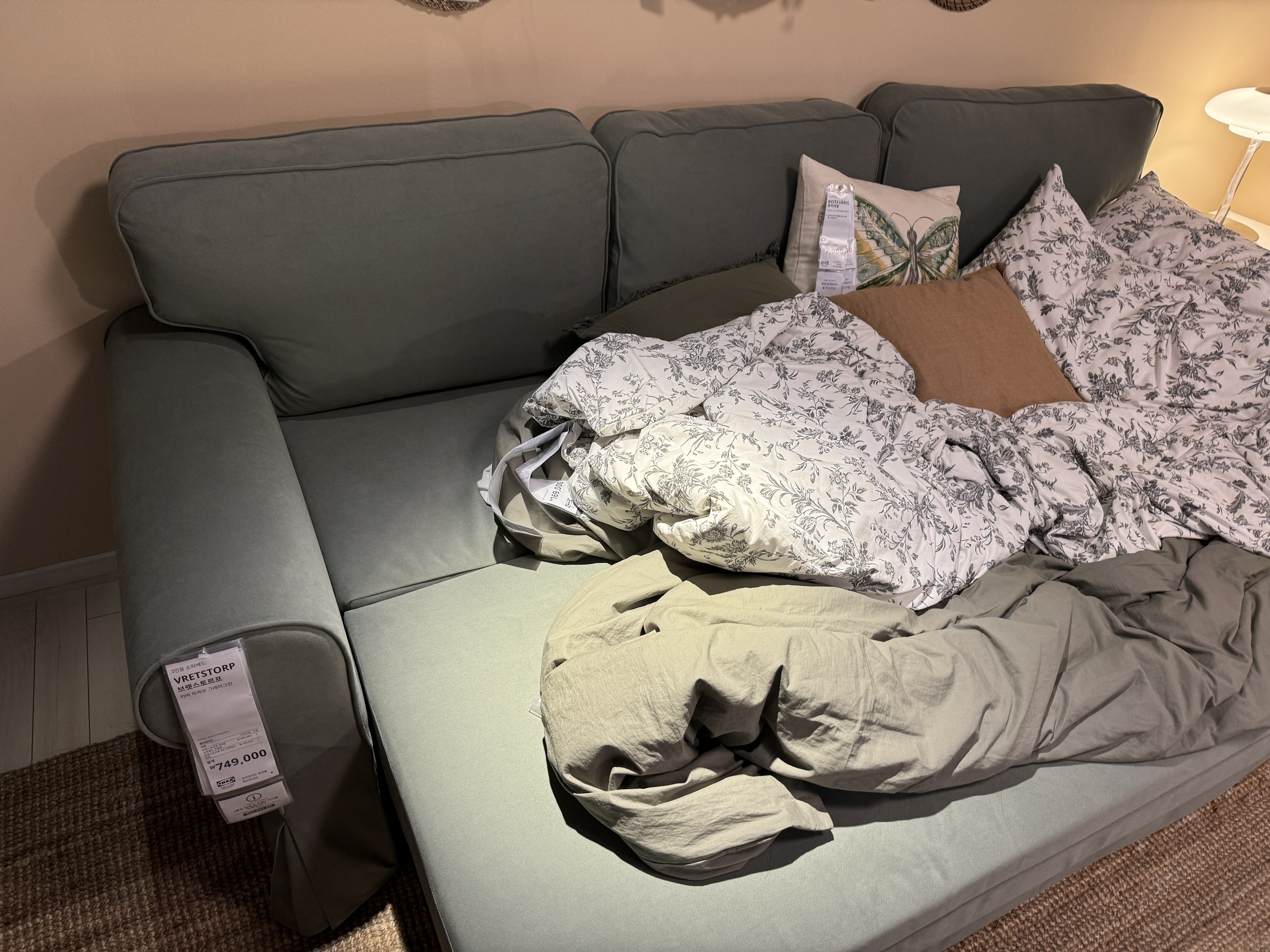 소파는 가격대가 있긴 했지만 직접 앉아보고 누워보니 집에 있으면 잠이 스르륵 올것같아요~