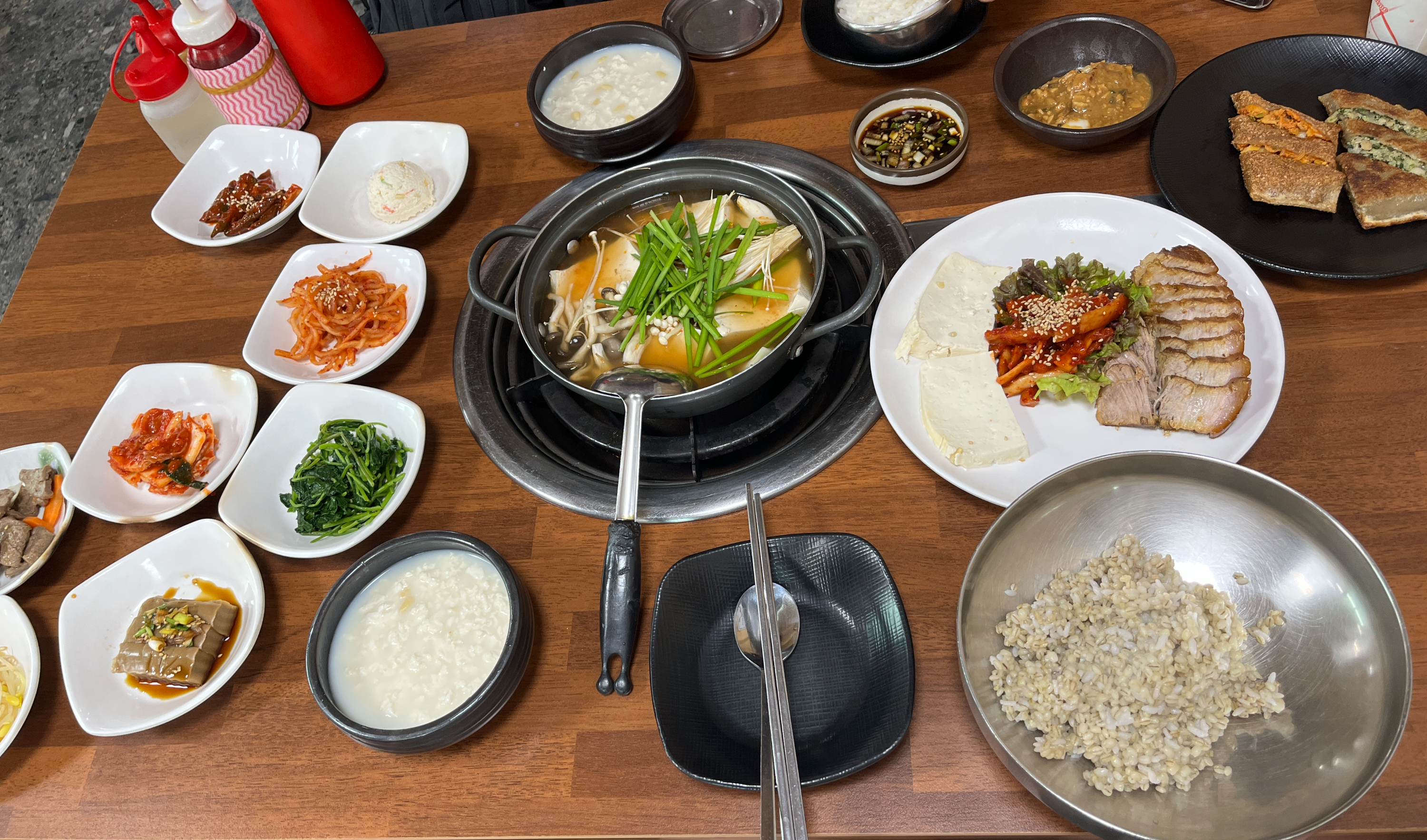 가평 두부전골 수육 메밀전병 잣순두부 등이 나왔어요~