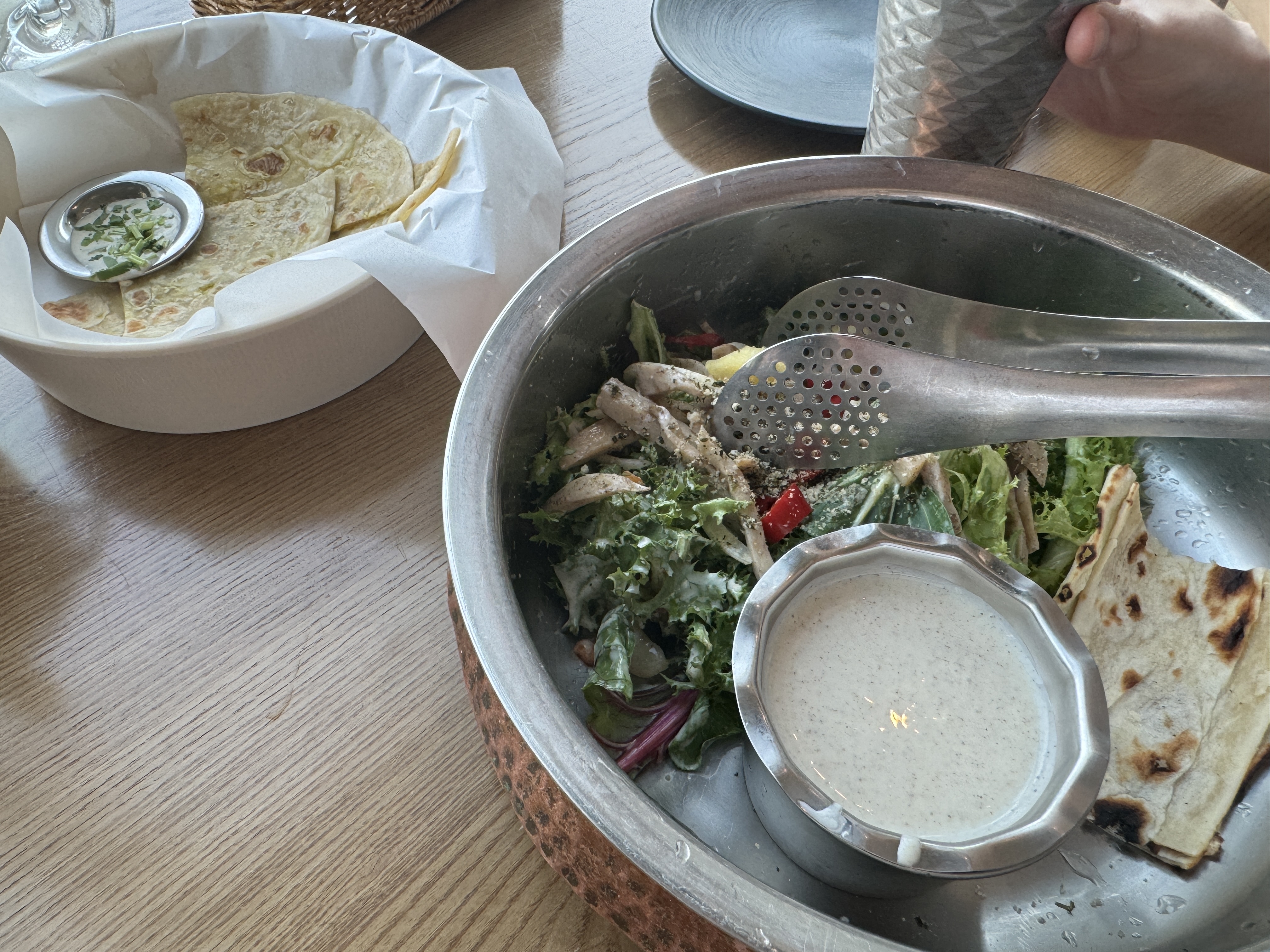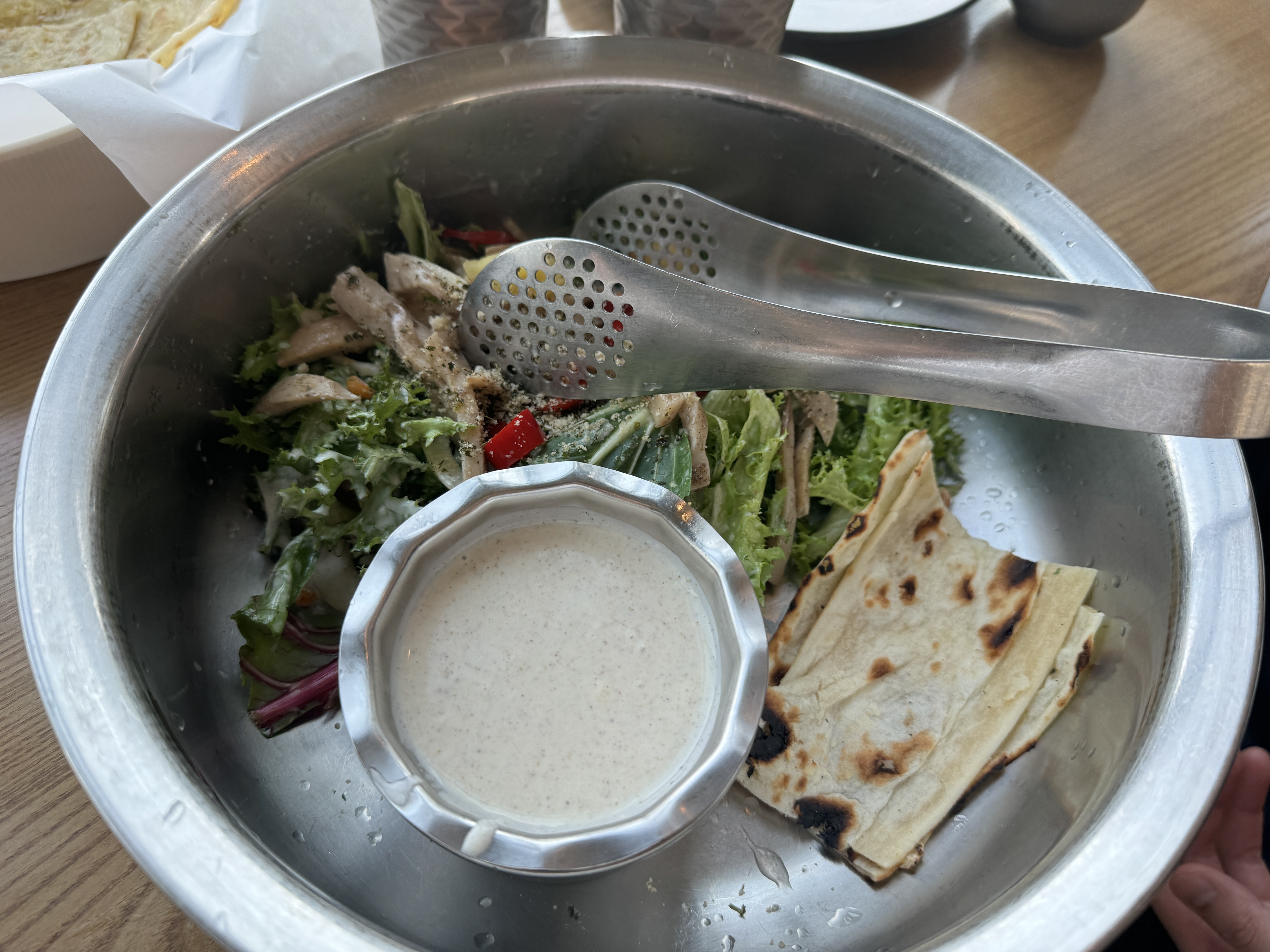 샐러드 느낌이긴한데 안에 약간 난이 들어가는데 신선하면서도 맛있어요~