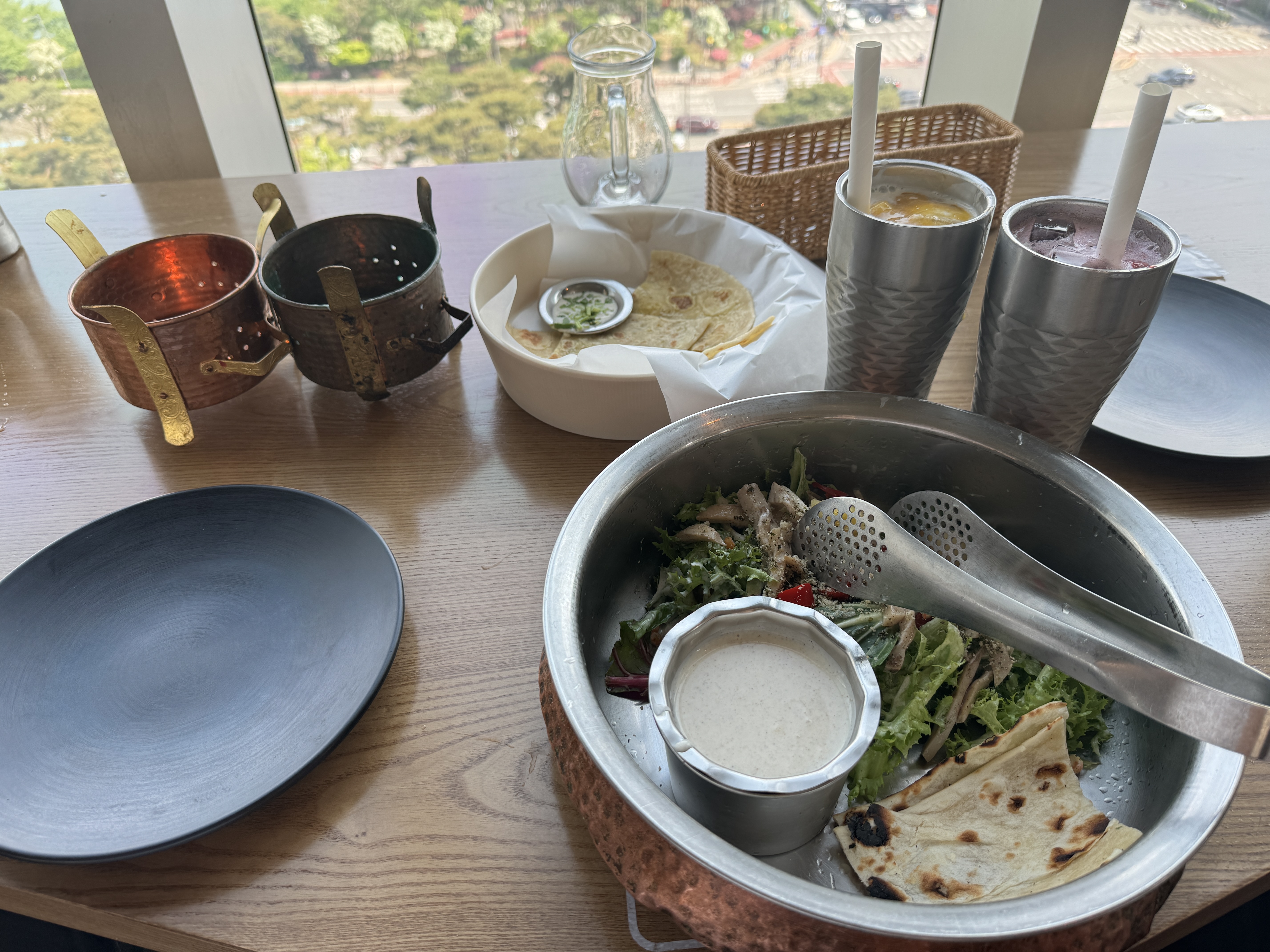 석촌호수 뷰 맛집 아그라 롯데 잠실에비뉴엘점 잠실 맛집 커리 난 탄두리치킨 무한리필맛집에서는 창가 자리로 안내를 받았는데요 ~ 가만히 앉아서 처음 나온 메뉴가 프라타가 나왔어요 ~