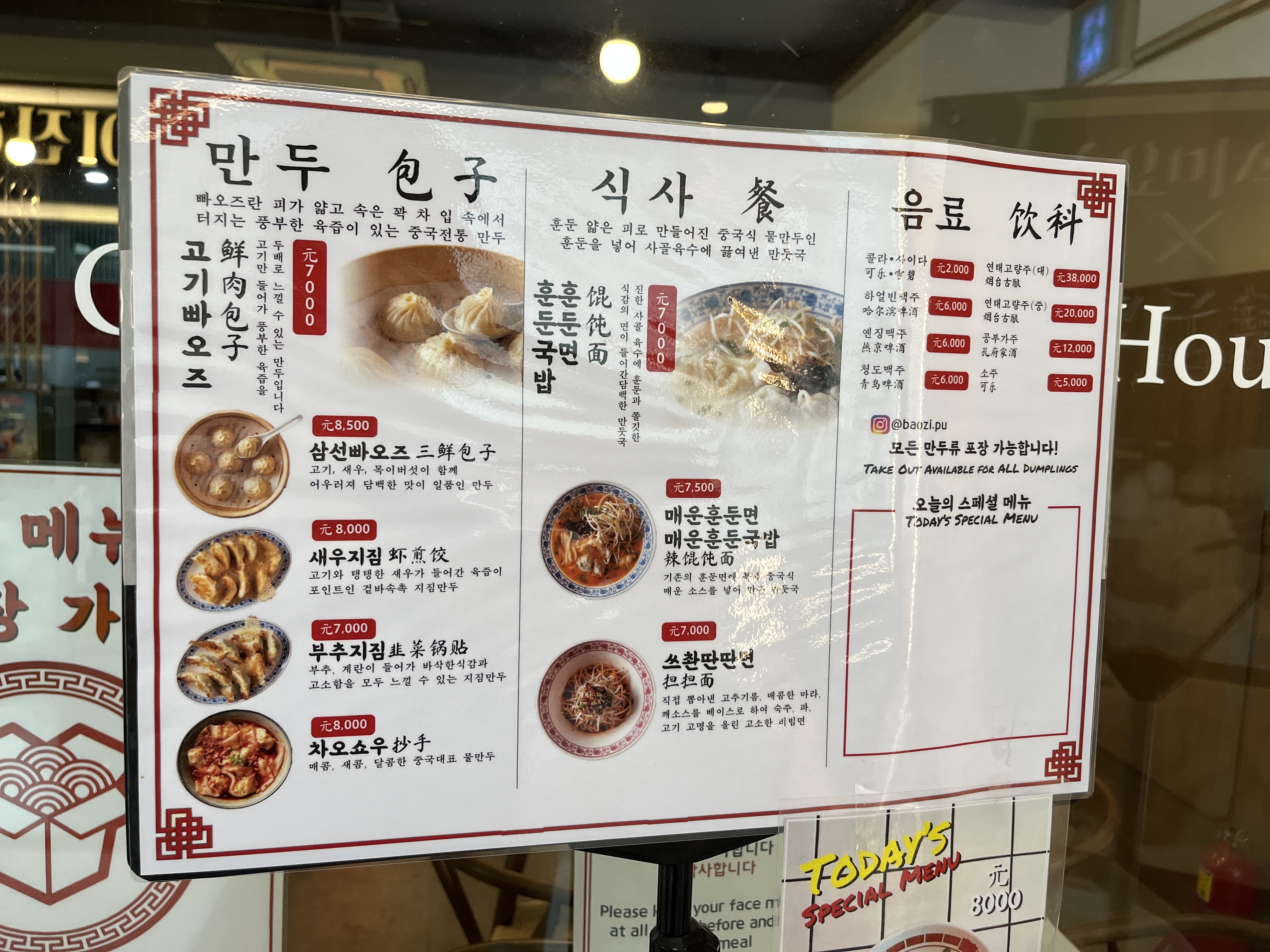 가산디지털단지역 중식만두 전문 맛집 빠오즈푸 가산점 메뉴판이에요~
