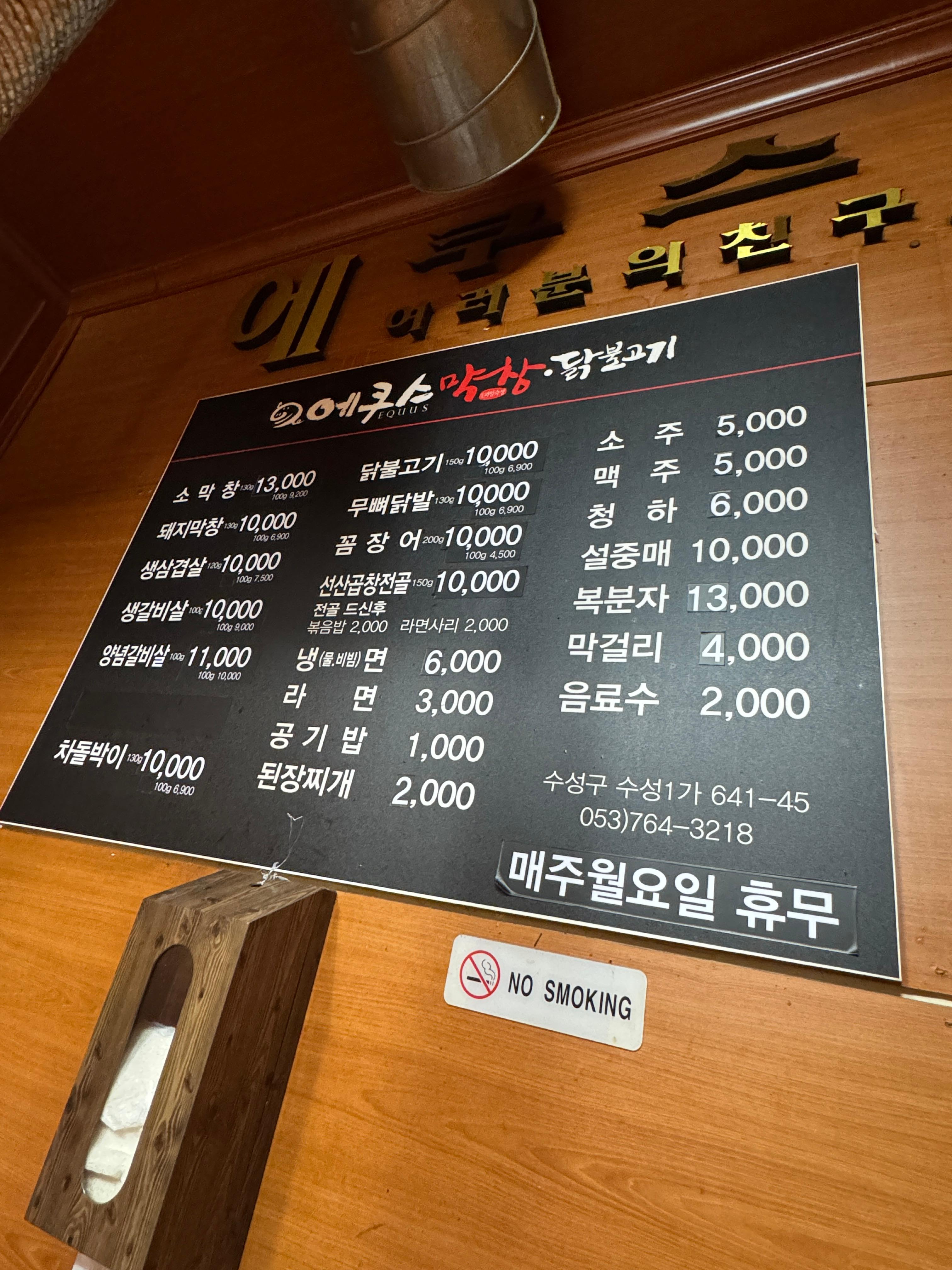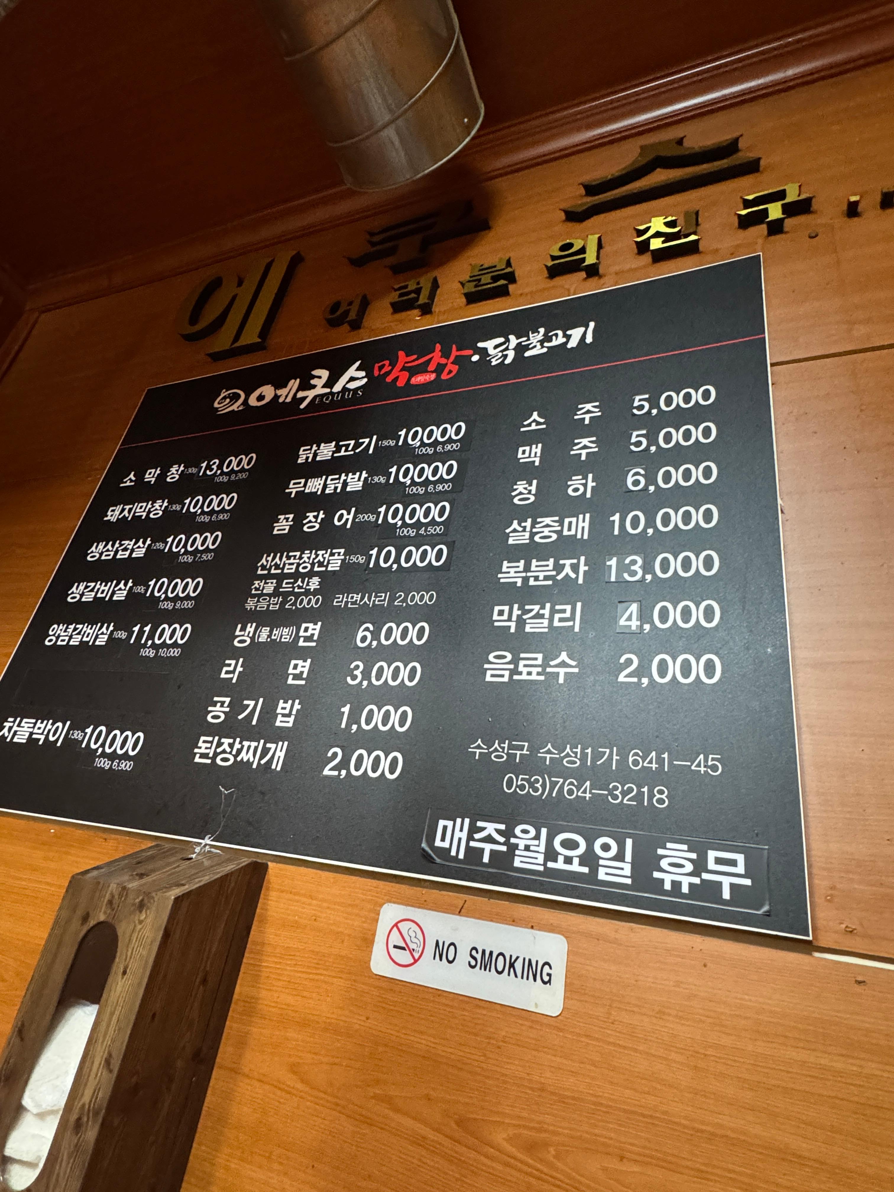 대구 출장으로 가본 대구 현지인 막창 맛집 에쿠스막창 본점 대구 막창 맛집 메뉴판이에요~