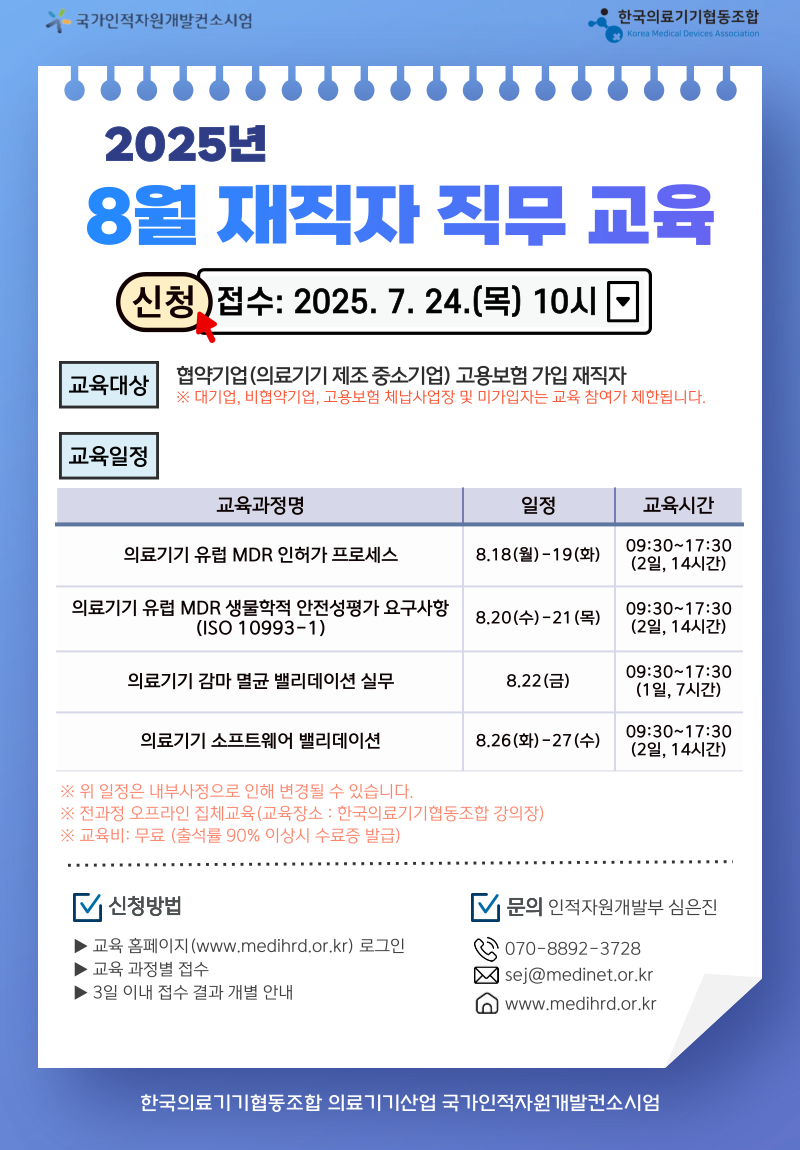 | 의료기기 4월 교육 의료기기 공정 밸리데이션 실무(클린룸·세척·포장) (0) | 2025.03.19 |