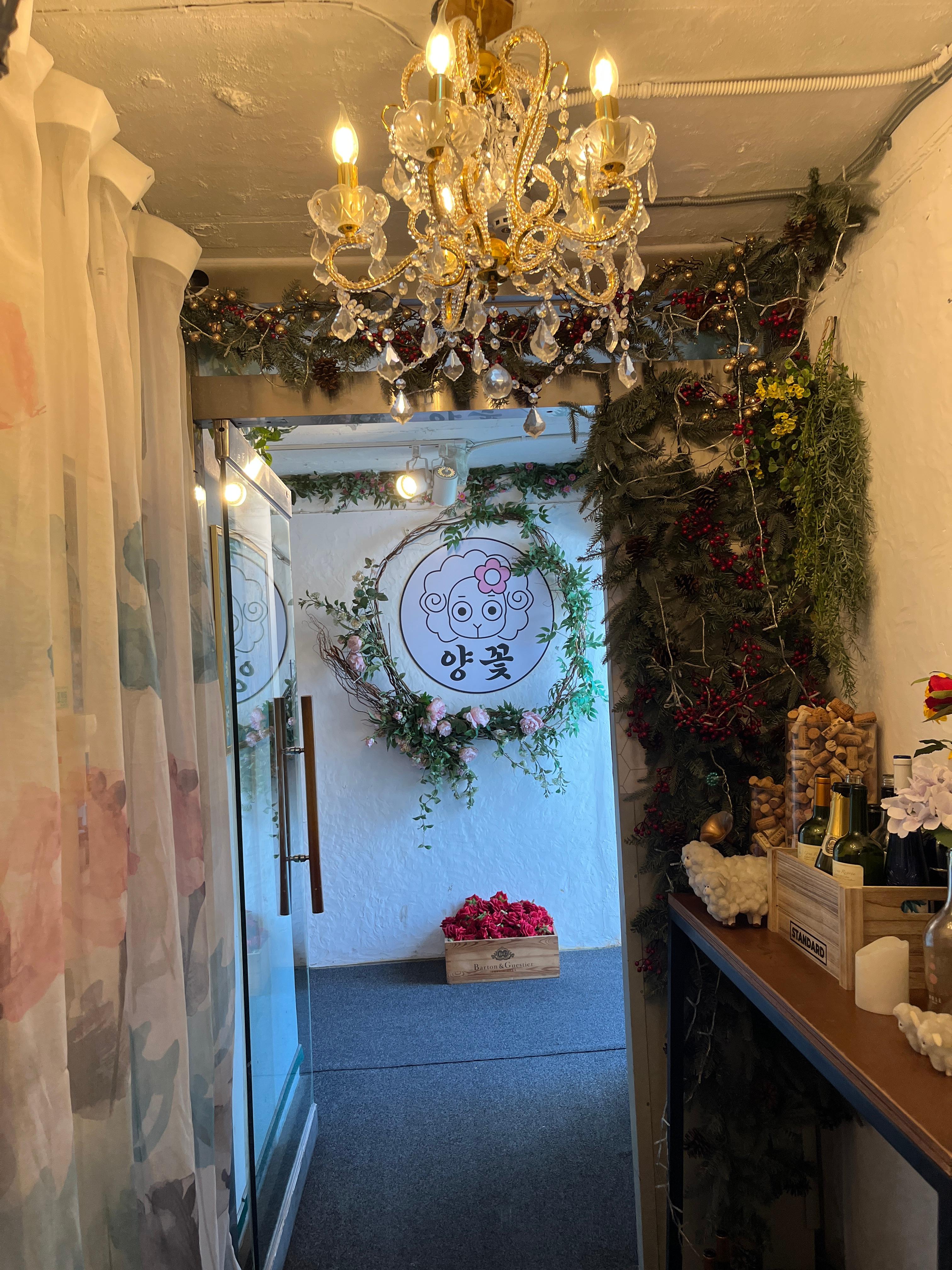 양고기 오마카세 양꽃 강남본점 논현 양갈비 맛집 논현 양갈비 논현 양갈비 맛집 프렌치랙 숄더랙 맛집으로 들어가는 입구에요~ 입구에서부터 엄청난 조명이 반겨주네요~ 샹들리에~ 게다가 입구에는 인테리어도 장난아니에요~