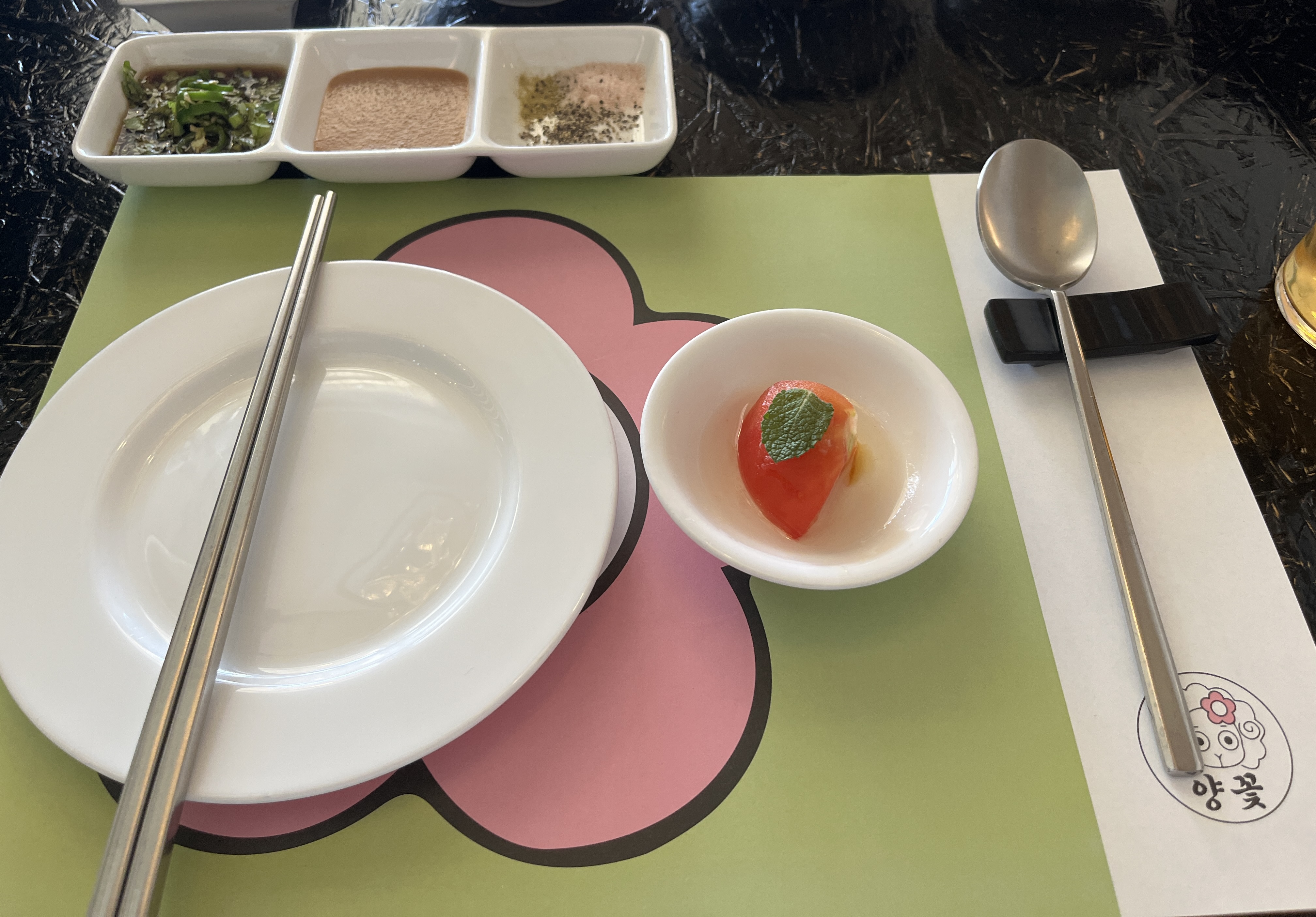 양고기 오마카세 양꽃 강남본점 논현 양갈비 맛집 논현 양갈비 논현 양갈비 맛집 프렌치랙 숄더랙 맛집 예약된 자리에는 이렇게 환영의 문구가 있어서 기분이 좋았어요~