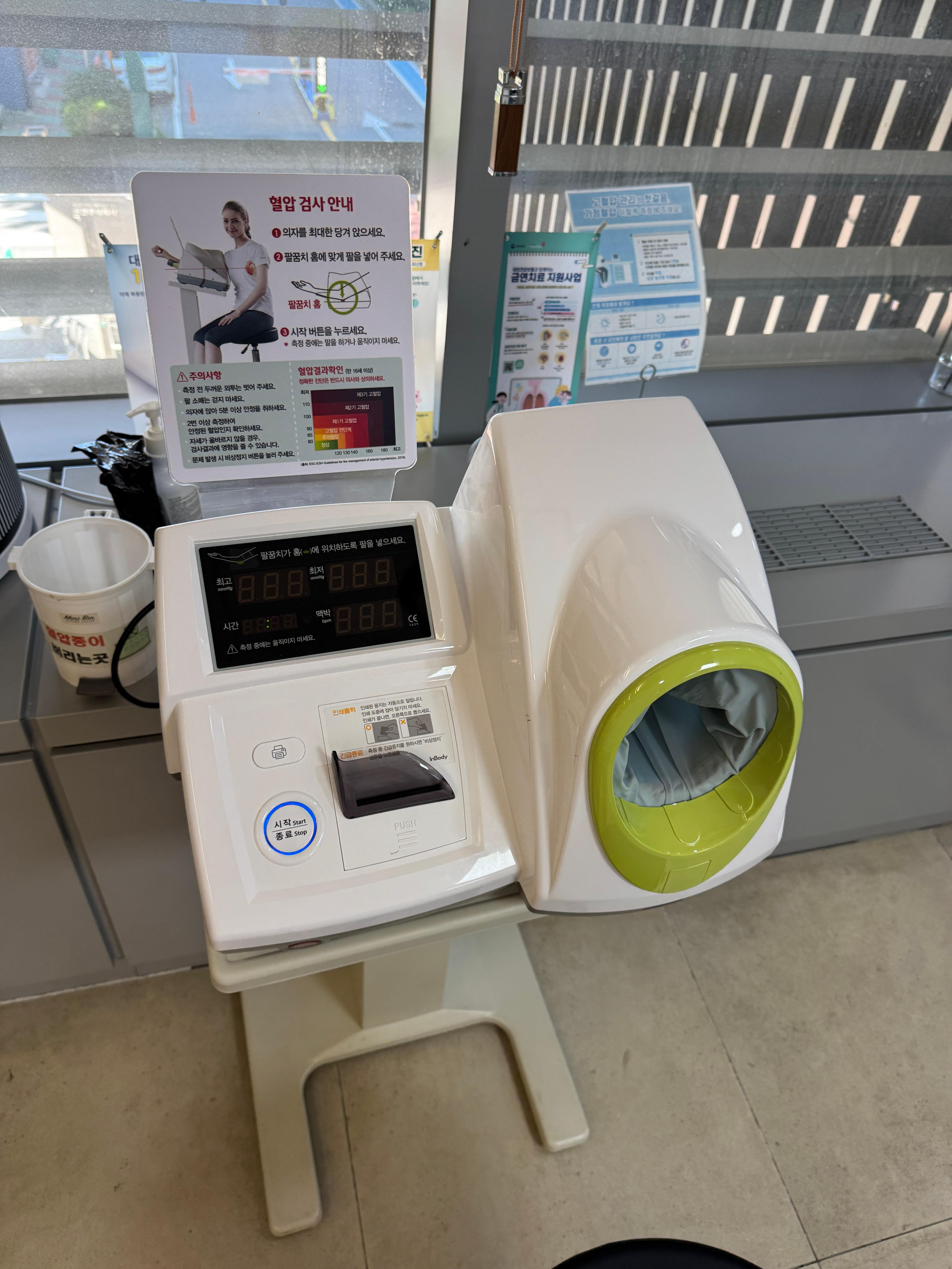 건강검진 안내를 받았고, 일단 혈압부터 재서 종이를 가져다드렸어요~