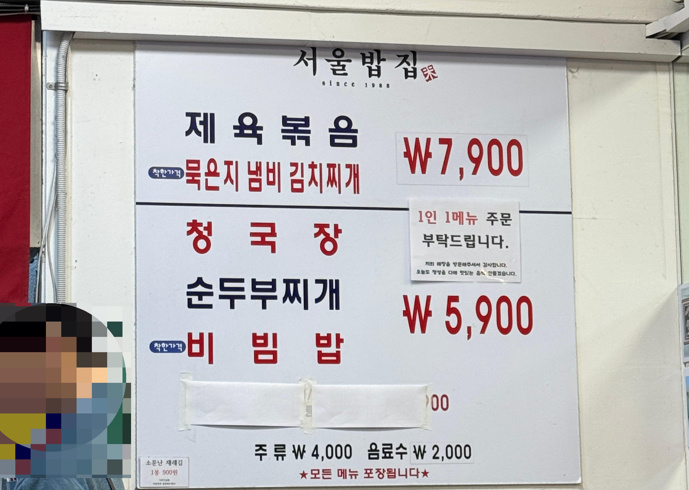 신림역 혼밥하기 좋은 서울밥집 24시간 영업 맛집 신림역 제육볶음 맛집 메뉴판이에요